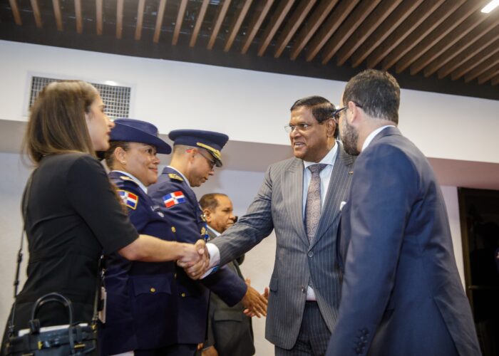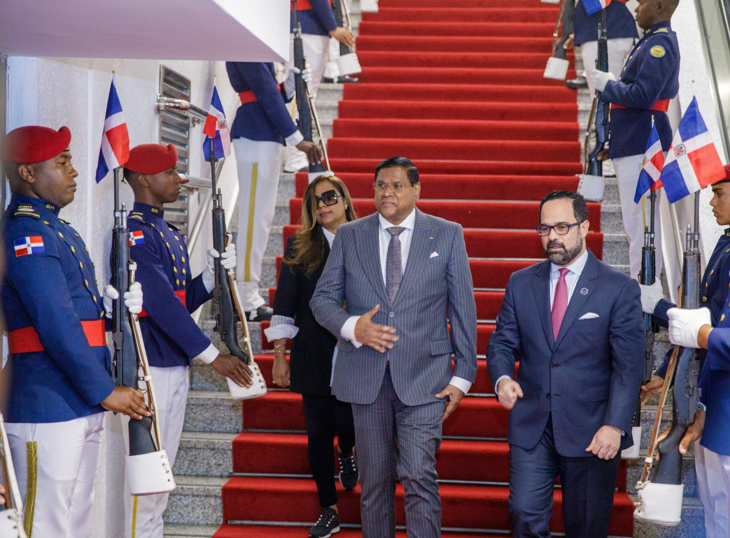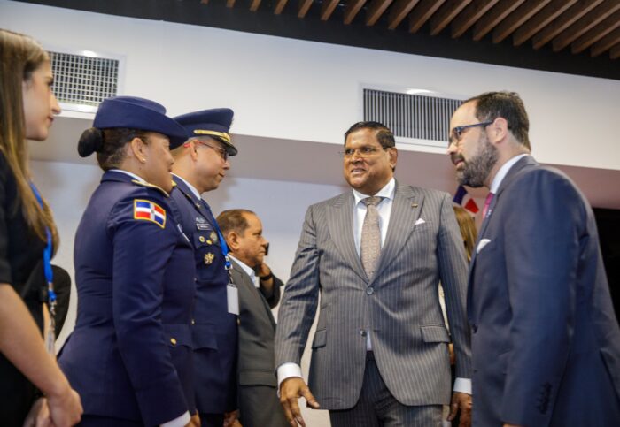 Santokhi llegó a suelo dominicano a las 7:03 de la noche por el Aeropuerto Internacional de las Américas José Francisco Peña Gómez, junto a su esposa Melissa Santokhi, el canciller de Suriname, Albert R. Ramdin y una delegación para asistir al acto el próximo 16 de agosto.