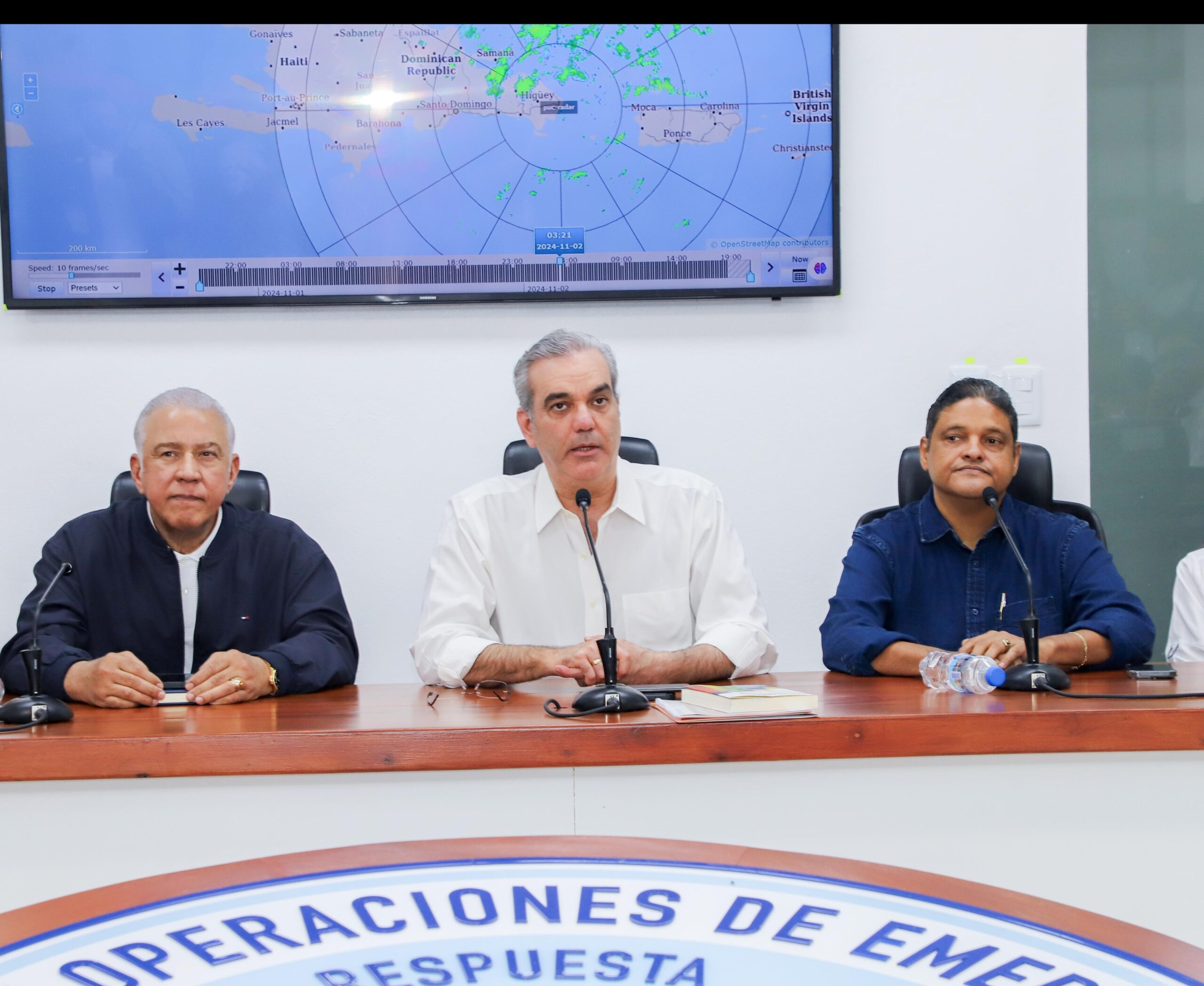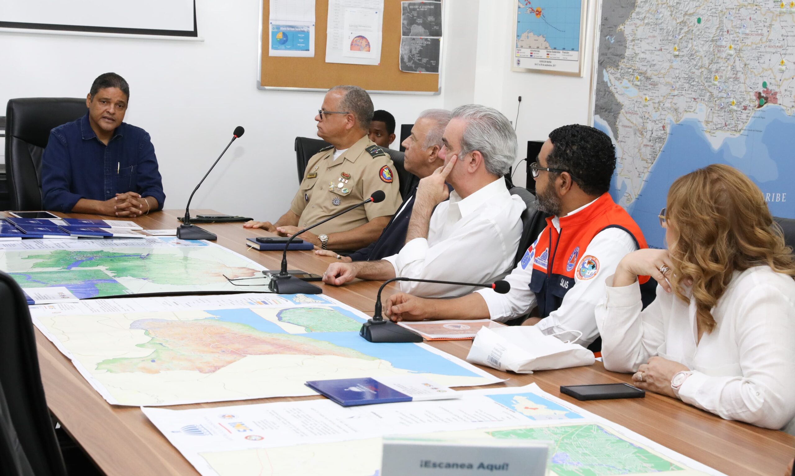 El presidente Luis Abinader encabezó este sábado una reunión con los organismos de emergencia en el Centro de Operaciones de Emergencias (COE), donde se anunciaron las medidas del Gobierno ante los efectos de la vaguada que incide en el país.