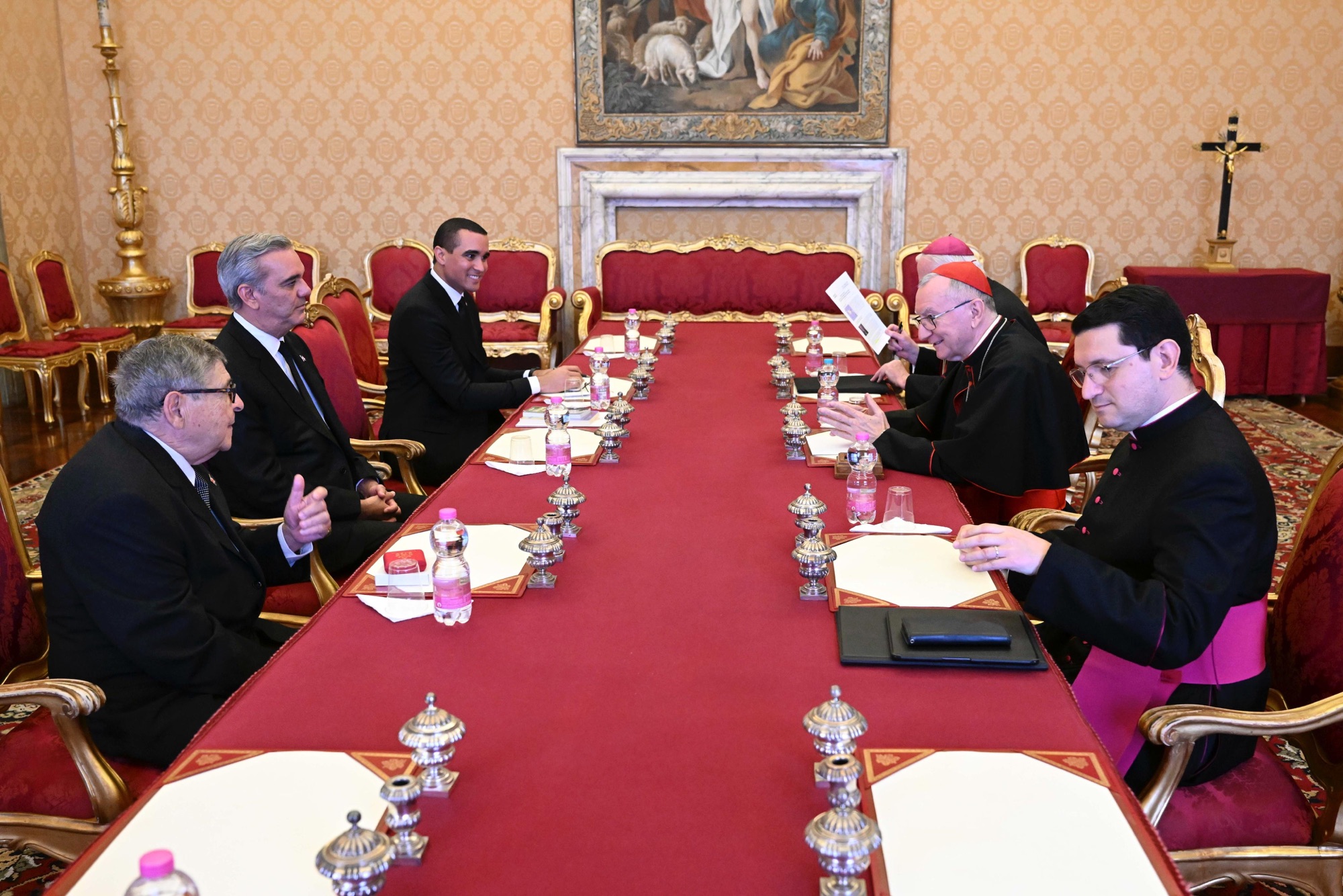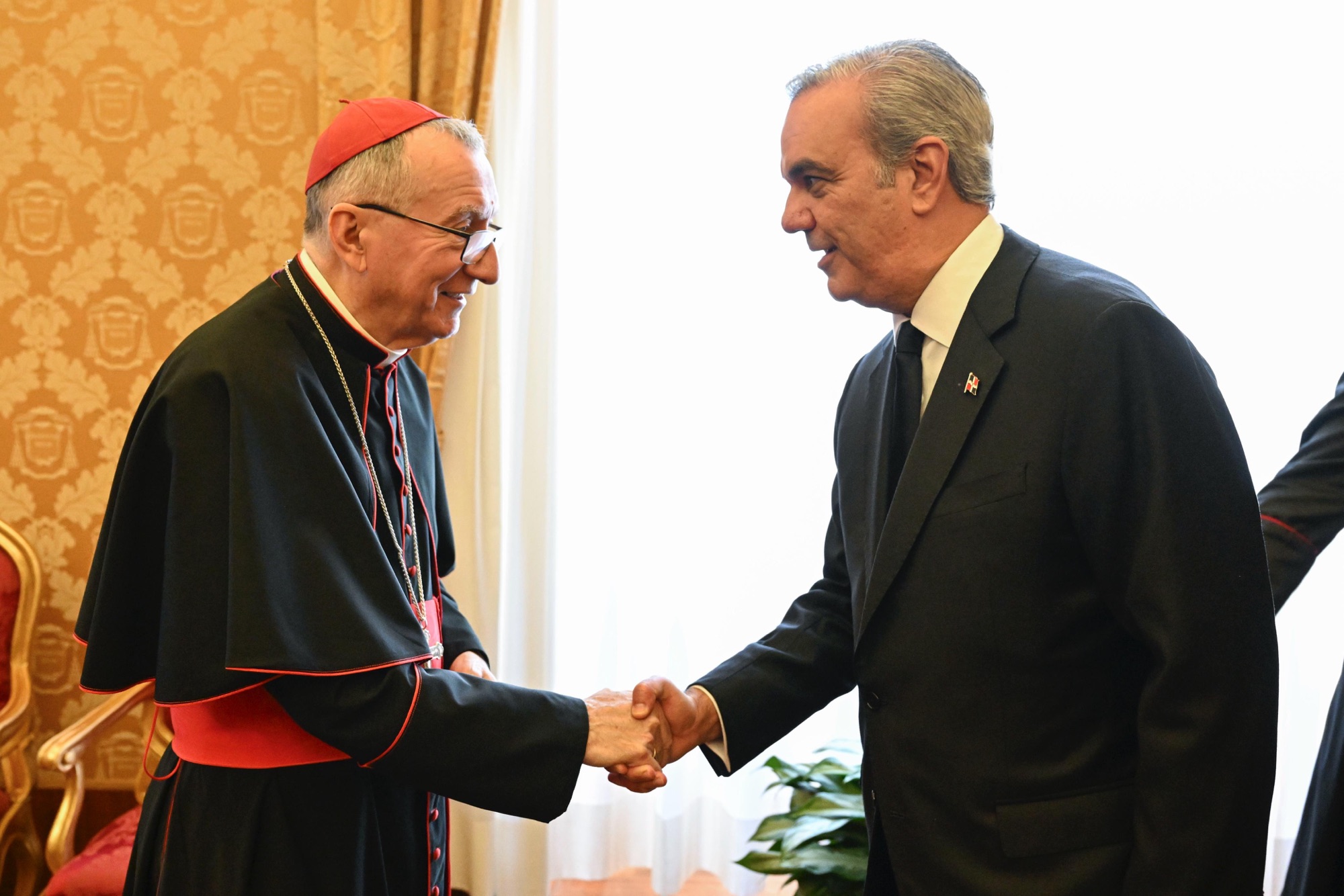 Posterior a su encuentro con el Papa, el presidente dominicano se reunió con el secretario de Estado de la Santa Sede, Su Eminencia Reverendisima, Pietro Parolin.