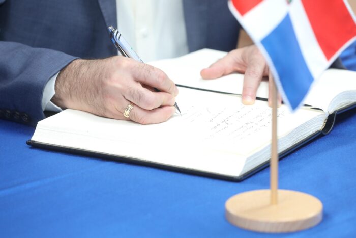 Estuvieron presentes, el presidente del Senado, Ricardo de los Santos; la ministra de la Mujer, Mayra Jiménez; los directores de Politur, Minoru Matsunaga; de la DIDA, Elías Báez; del Infotep, Rafael Santos Badía; los presidentes de la Confederación Autónoma Sindical Clasista (CASC), Gabriel del Río Doñe; de la Confederación Nacional de Unidad Sindical (CNUS), Rafael (Pepe) Abreu y de la Confederación Nacional de Trabajadores Dominicanos (CNTD), Jacobo Ramos.