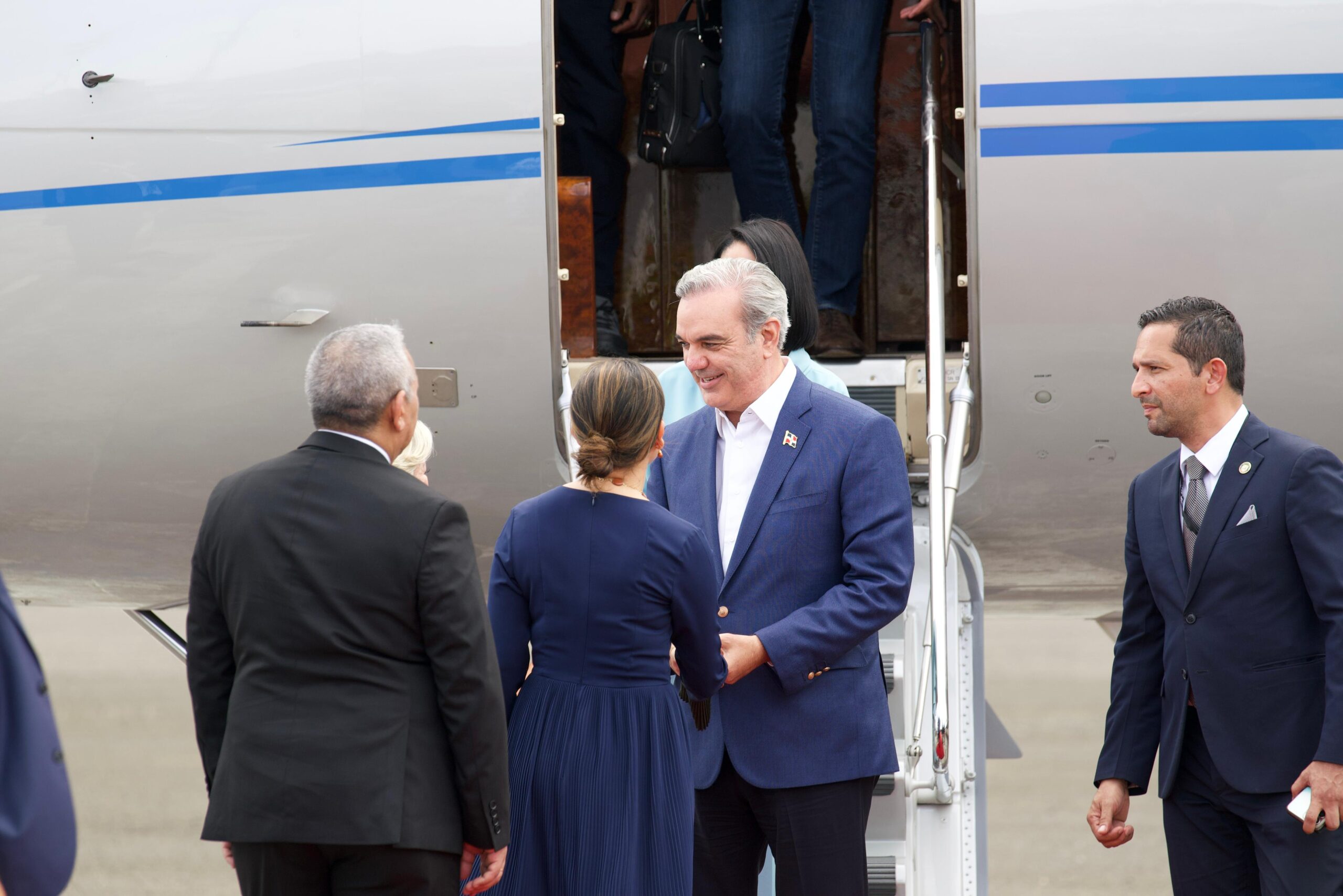 El presidente Luis Abinader arribó a la ciudad de Panamá a las 4:45 de la tarde de este domingo (hora de República Dominicana) para asistir al acto de toma de posesión del presidente electo, José Raúl Mulino Quintero.