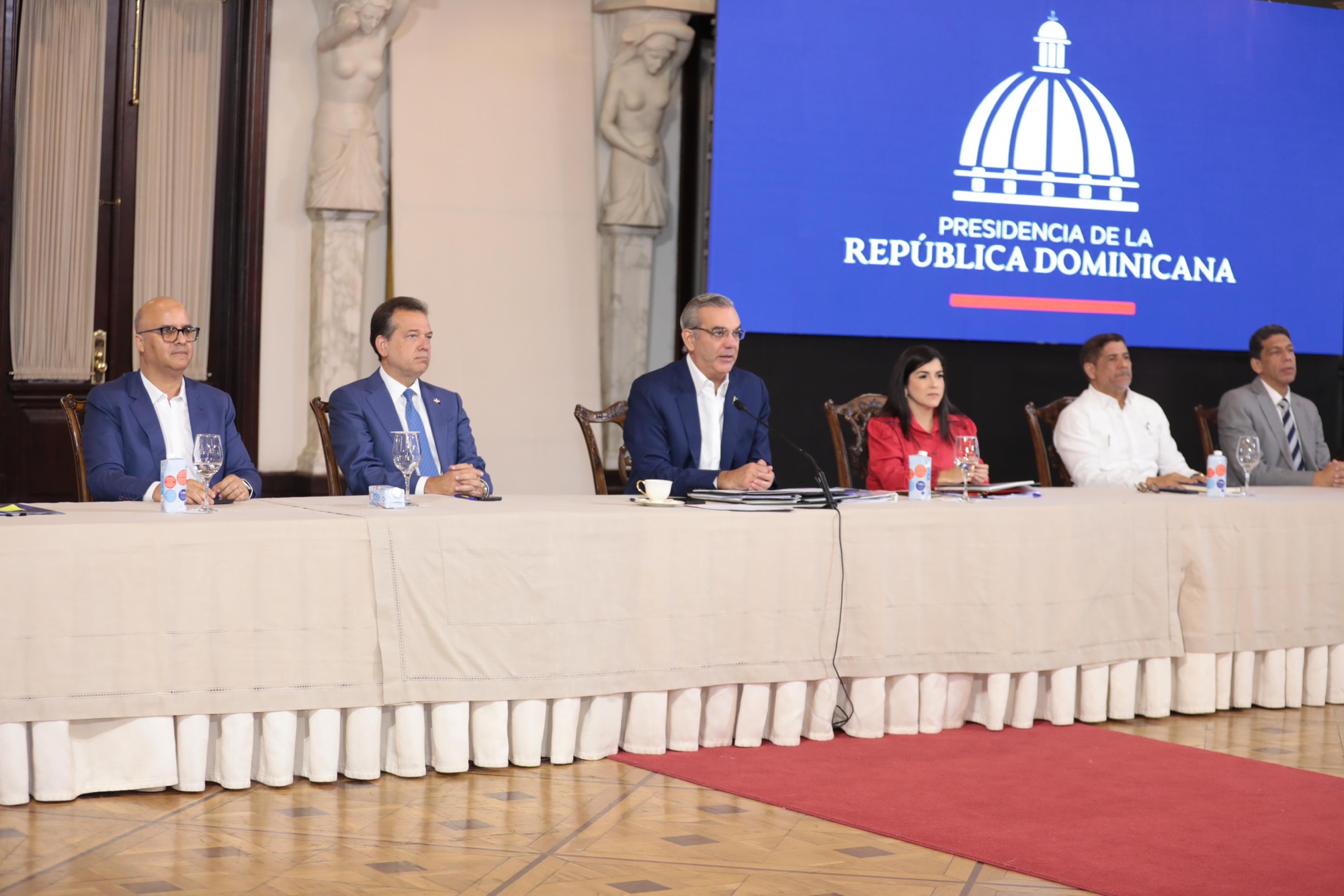 Estuvieron presentes los ministros de la Presidencia, Joel Santos; Administrativo de la Presidencia (Interino), Igor Rodríguez; de Agricultura, Limber Cruz; el presidente de la Asociación Dominicana de Exportadores (Adoexpo), Karel Castillo y el administrador del Banco Agrícola, Fernando Durán.