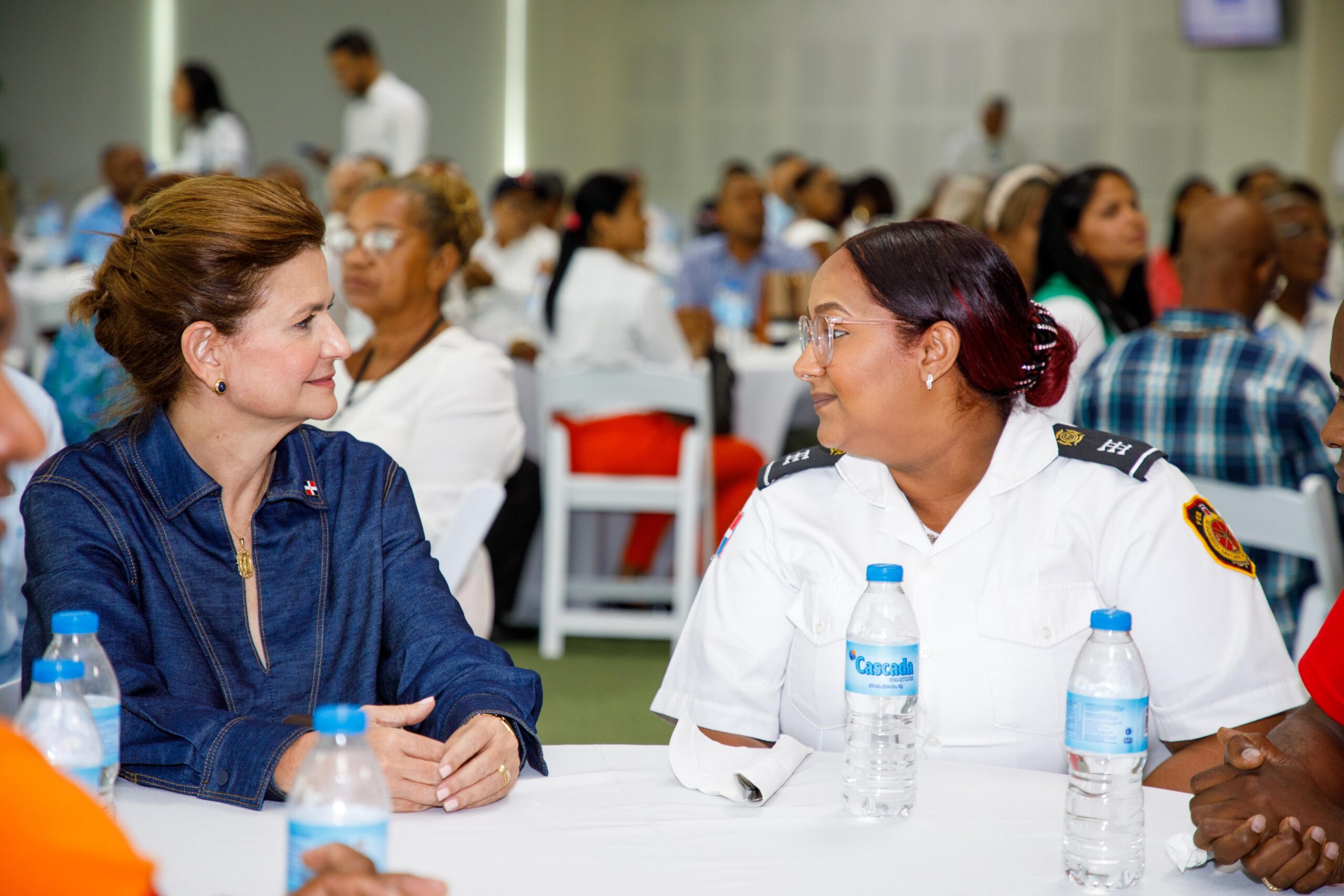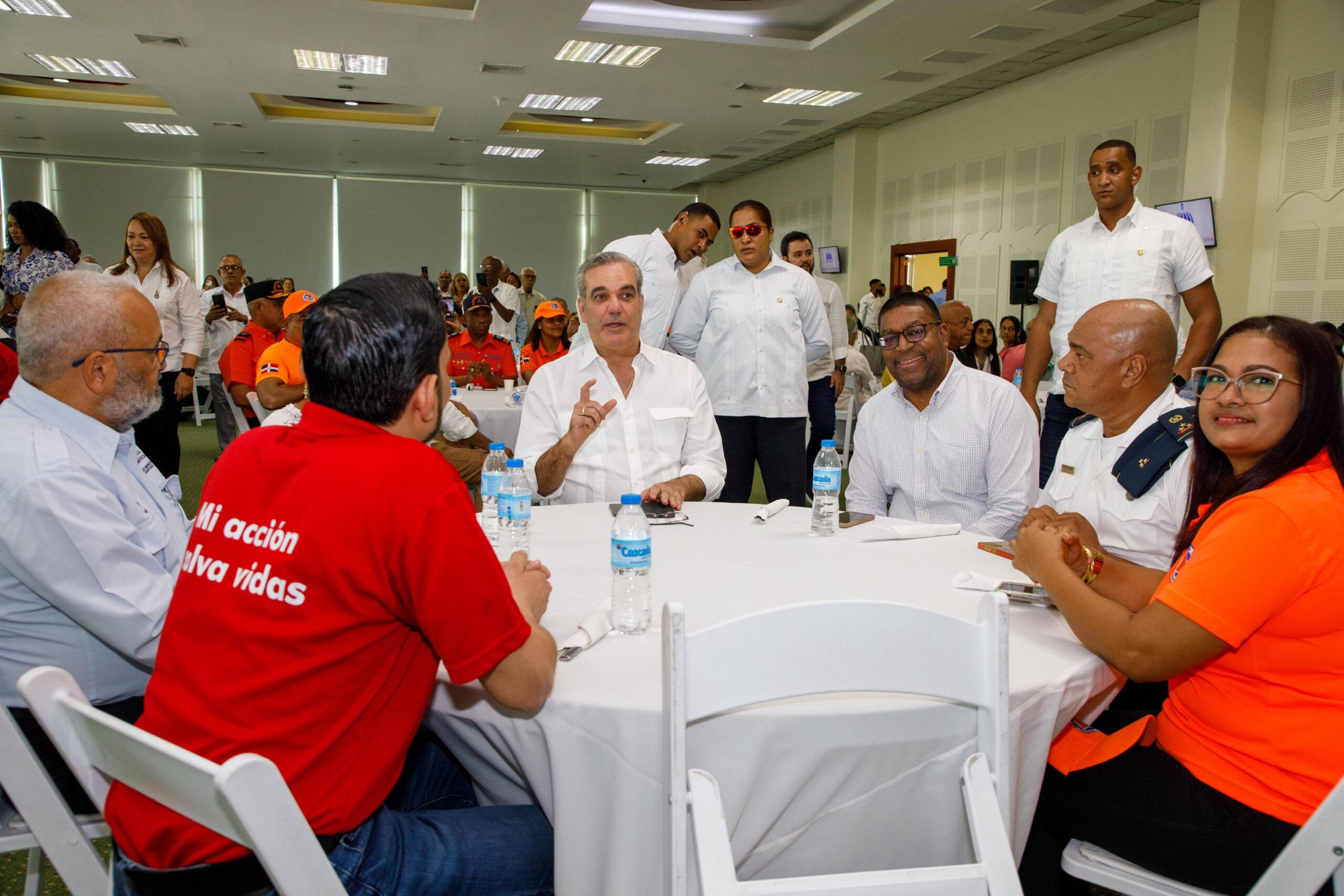 El presidente Luis Abinader sostuvo un encuentro con comunitarios y voluntarios de la Defensa Civil, Cruz Roja y el Cuerpo de Bomberos, donde afirmó que seguirá escuchando a todos los sectores para solucionar los problemas de la gente en todo el país.