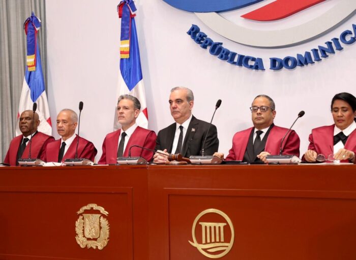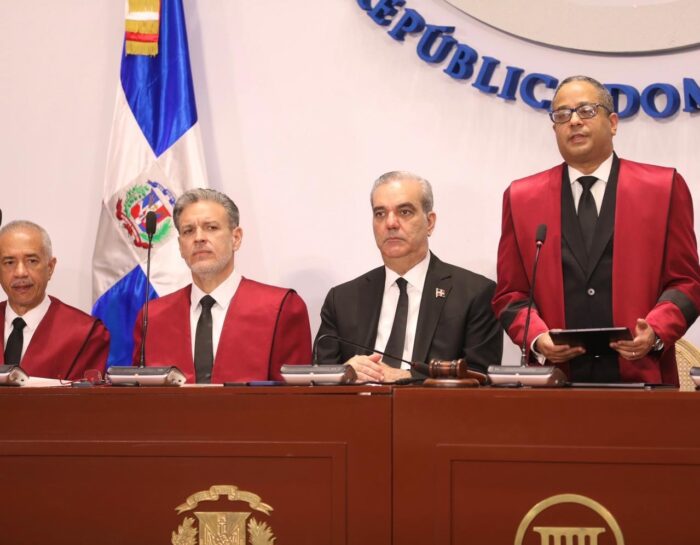 En su discurso, el presidente del Tribunal Constitucional destacó la presencia del presidente Abinader, de quien resaltó que “no ha faltado a ninguna de las audiencias solemnes celebradas».