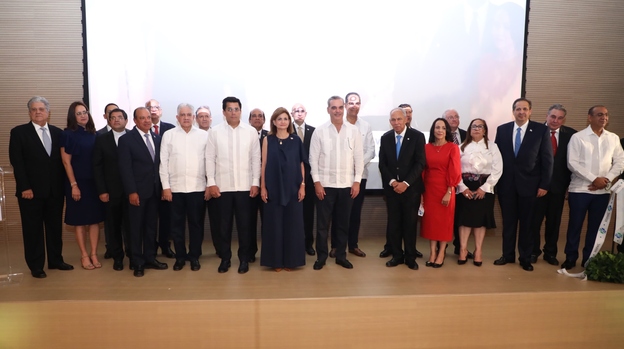Junto al presidente Abinader estuvieron la vicepresidenta, Raquel Peña; los ministros de Salud Pública, Víctor Atallah y de Turismo, David Collado y el Consejo de Administración del HOMS, presidido por el doctor Rafael Sánchez Español.
