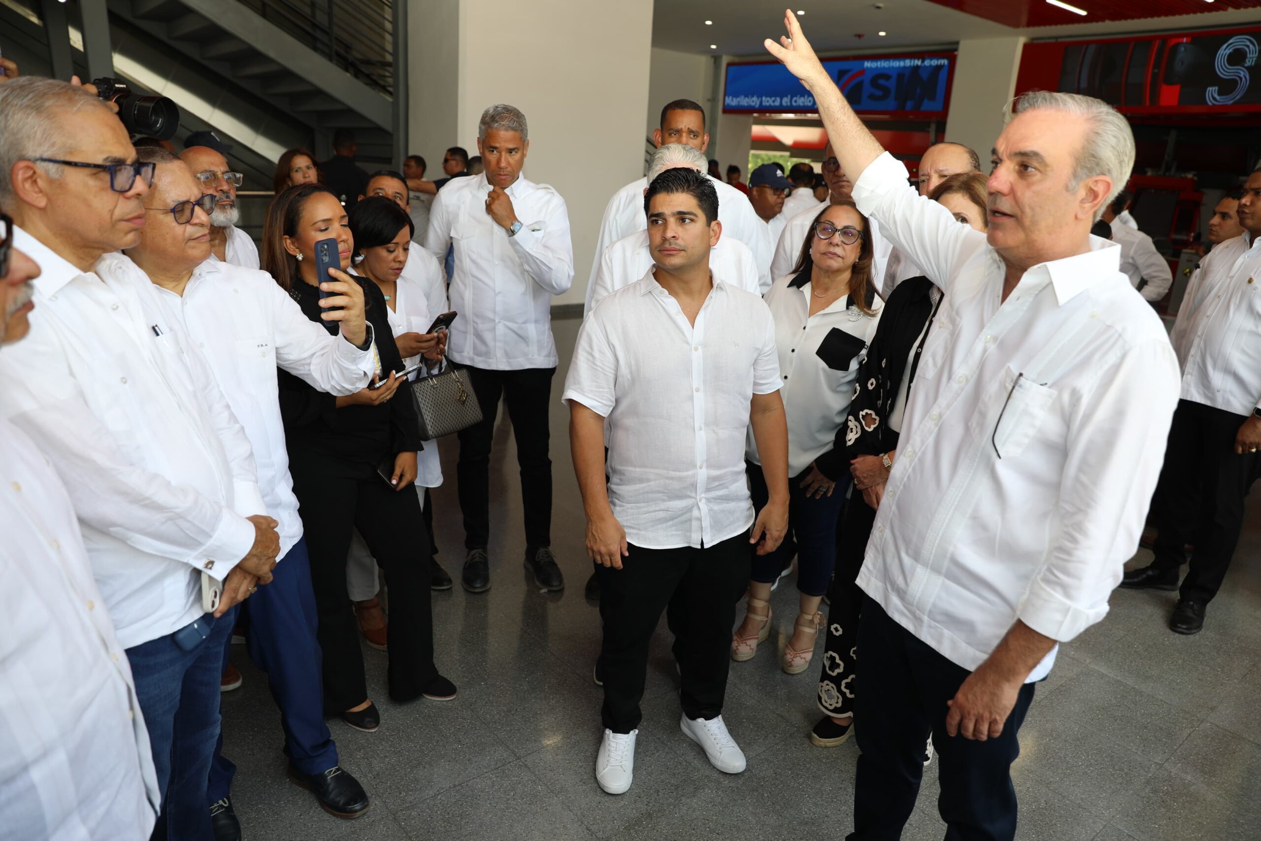 El gobernante estuvo acompañado durante el recorrido por la vicepresidenta Raquel Peña; el ministro de la Presidencia Joel Santos; el actual senador de Santiago Eduardo Estrella; la gobernadora, Rosa Santos; el director ejecutivo del Fideicomiso para el Desarrollo del Sistema de Transporte Masivo de la República Dominicana (FITRAM), Jhael Isa.
