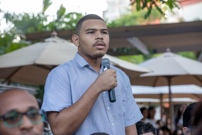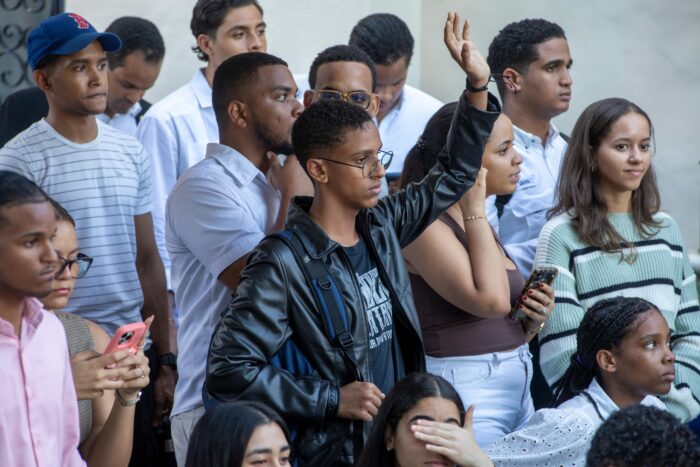 El presidente Luis Abinader participó en un conversatorio político con estudiantes universitarios, afianzando la cercanía y motivación hacia la población joven para que continúen desarrollándose con ahínco a nivel profesional y económico, recordando que la educación es una base fundamental para crear un futuro sólido y contribuir con el desarrollo del país.