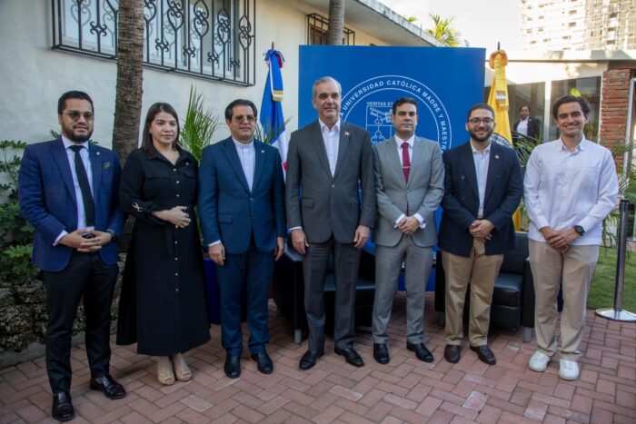 A su llegada, el jefe de Estado fue recibido por el rector de la PUCMM, reverendo padre doctor Secilio Espinal, junto al profesor y vicerrector académico Julio Ferreira, y la profesora Carolina Caba, decana de Estudiantes. También estuvo presente el ministro de la Juventud, Carlos Valdez y la diputada por el Distrito Nacional, Liz Mieses.