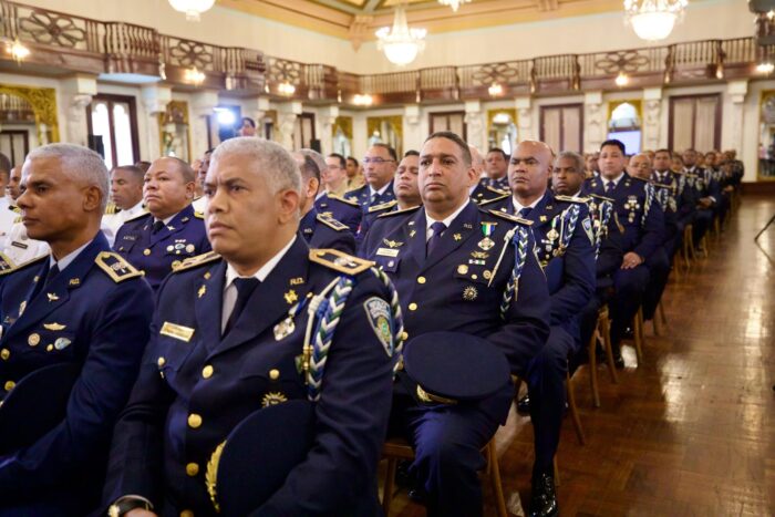 El presidente Luis Abinader, expresó este viernes su orgullo y admiración por las Fuerzas Armadas y la Policía Nacional, al encabezar el acto de salutación solemne de oficiales que conmemoran 35, 30, 25 y 20 años de servicio ininterrumpido, resaltando que la República Dominicana se ha consolidado como “un faro de paz, tranquilidad y estabilidad” en la región gracias al fortalecimiento y trabajo de estos cuerpos.
