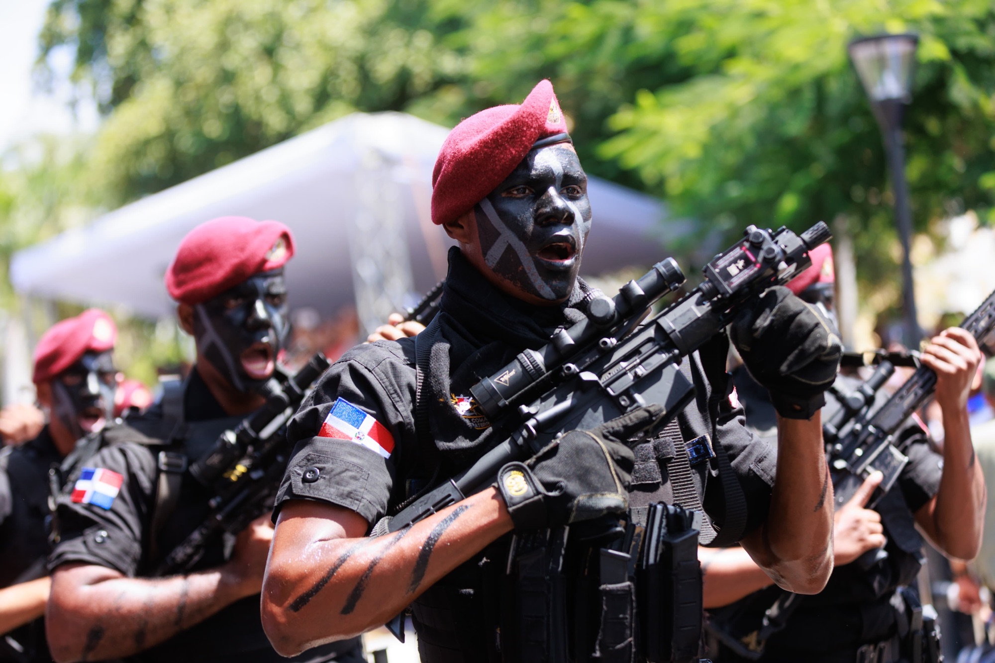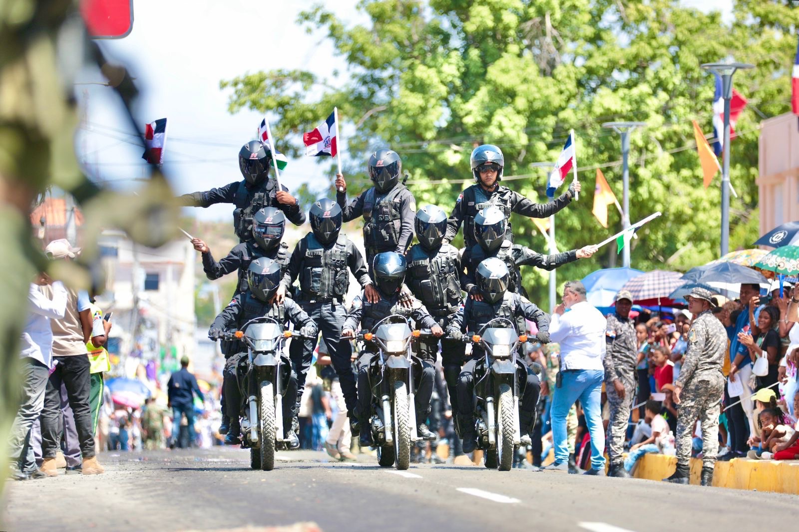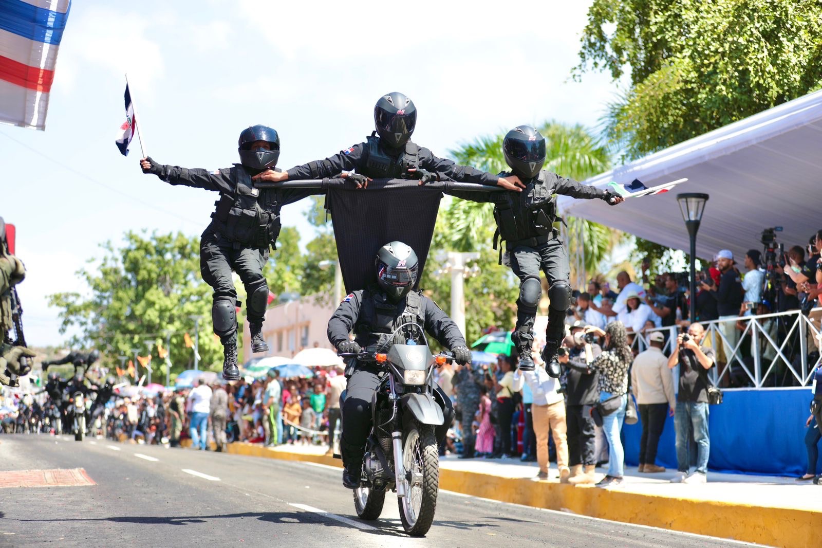 Miles de ciudadanos se aglomeraron frente a la goberbernacion de Azua para disfrutar de las acrobacias y el desfile.