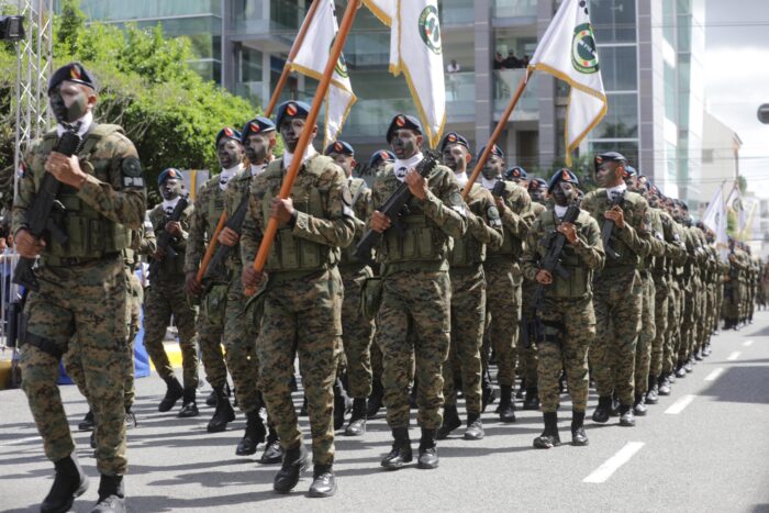 El desfile inició con la participación de estudiantes de diversos centros educativos de la provincia Duarte seguidos por cuerpos élites del Ejército de República Dominicana, unidades especiales de la Fuerza Aérea de República Dominicana y fuerzas especializadas de la Policía Nacional, incluyendo los Lince y el SWAT.