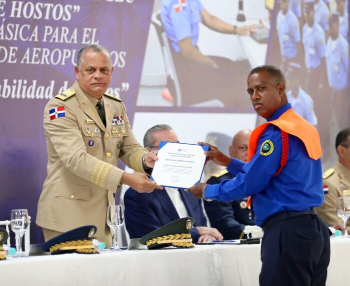 De su lado, el director de la Escuela de Seguridad de la Aviación Civil (ESAC), coronel piloto Manuel de Jesús Portorreal, destacó la importancia del acto académico como un hito en el fortalecimiento institucional del Cuerpo Especializado en Seguridad Aeroportuaria y de la Aviación Civil, al consolidar un modelo formativo basado en la disciplina, los valores y la excelencia profesional, orientado a garantizar la protección de la aviación civil y elevar los estándares de seguridad aeroportuaria en el país.