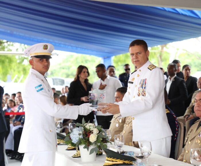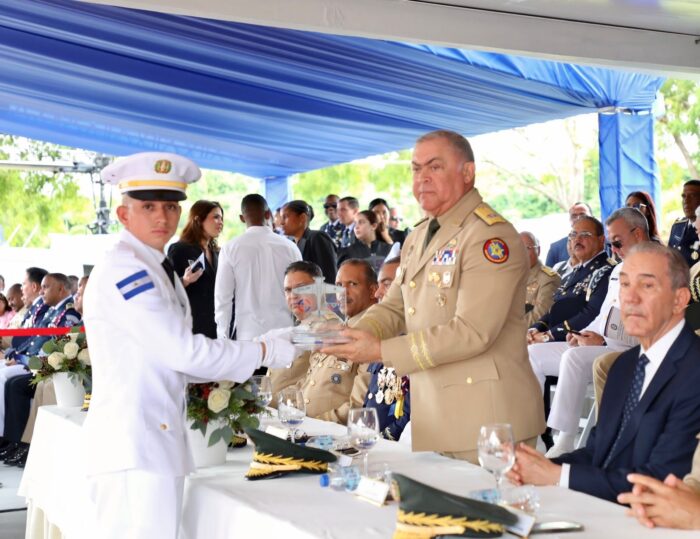 Al dirigirse a los nuevos oficiales, los exhortó a servir con honor, integridad y compromiso con la Patria, recordando que “cada amanecer de entrenamiento y cada noche de estudio ha sido una batalla ganada en el campo del esfuerzo personal”.