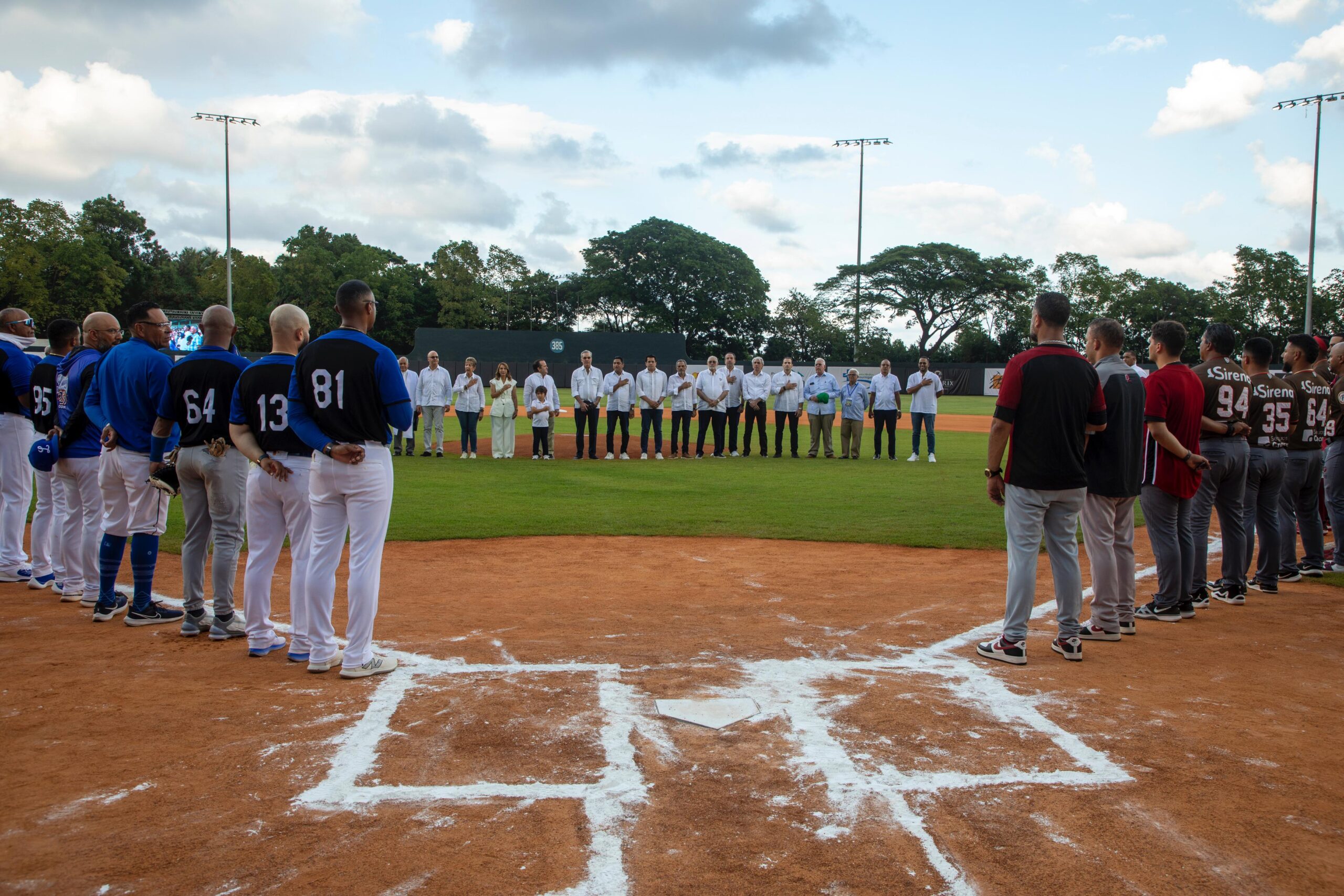 Con el lanzamiento de honor, se dejó el terreno listo para llevarse a cabo el partido en la antesala del inicio de la Liga Dominicana de Béisbol (LIDOM).