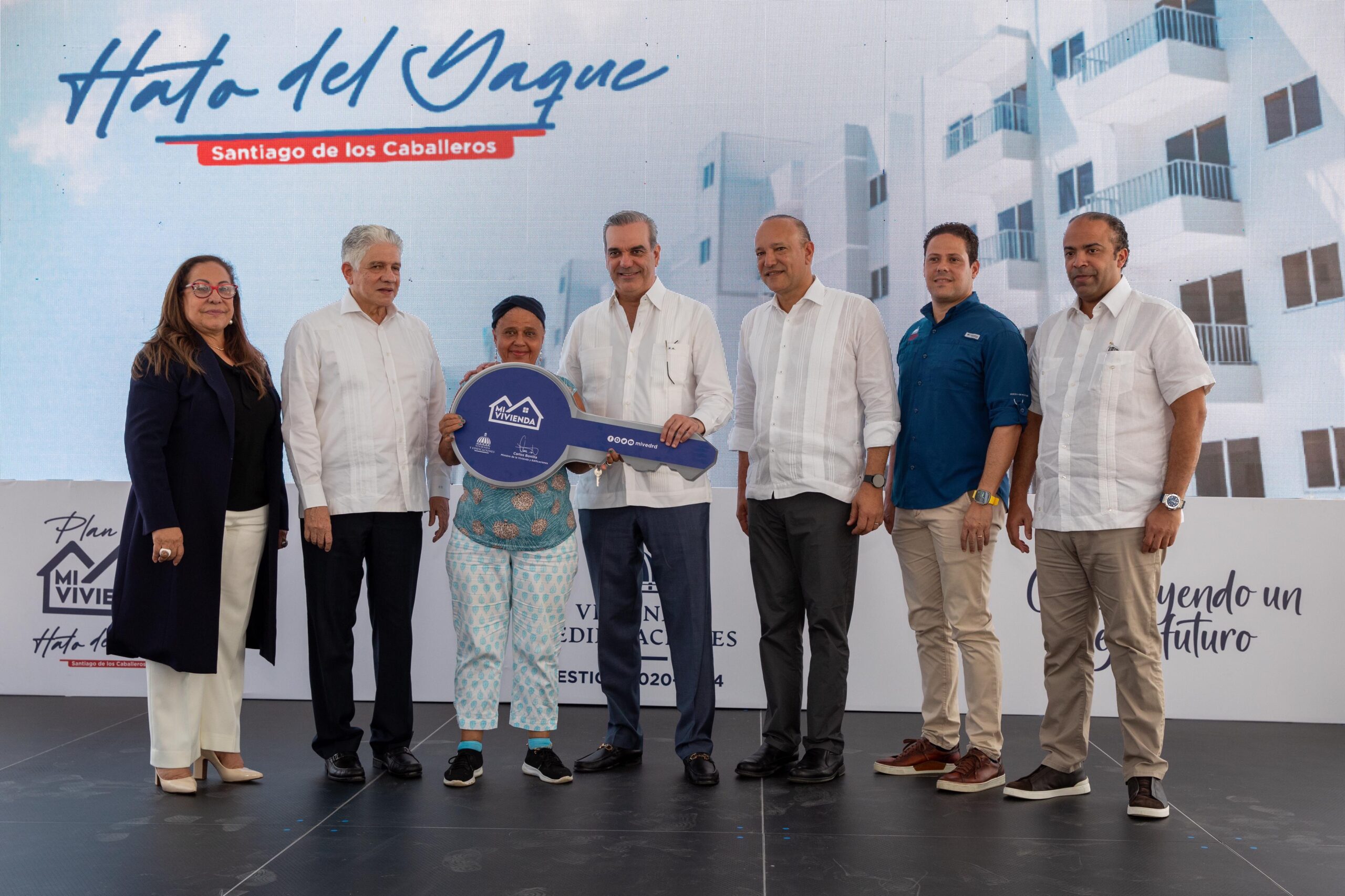 En el proyecto Mi Vivienda Hato del Yaque, el presidente Abinader y el ministro Bonilla entregaron 240 nuevos apartamentos a igual número de familias beneficiadas, que ahora pasan a ser propietarias de sus viviendas.