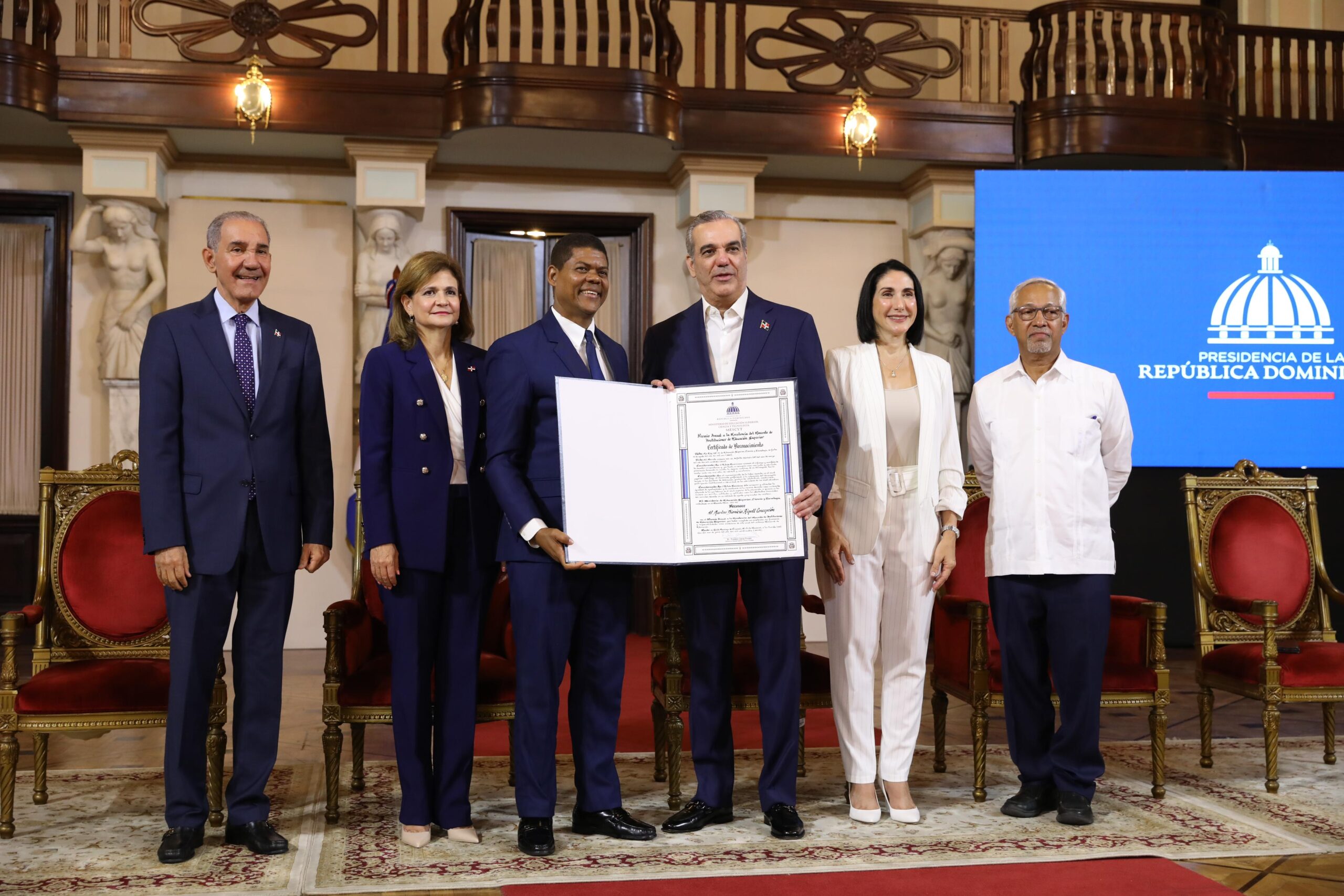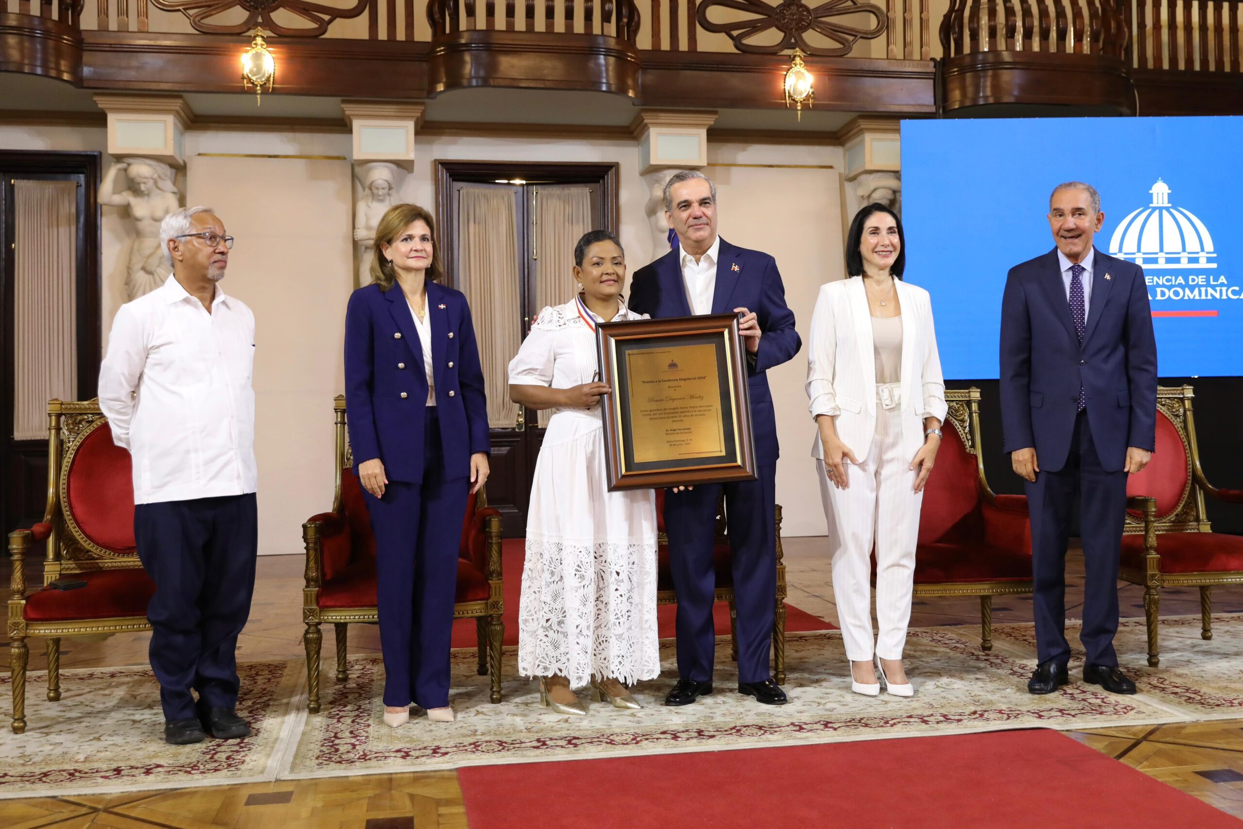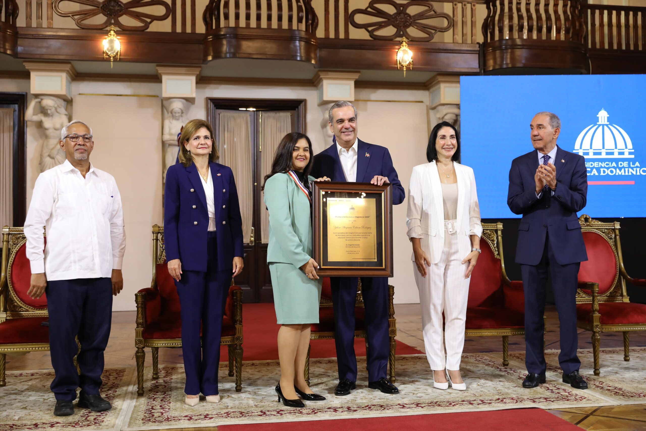 El presidente Luis Abinader en ocasión de la celebración del Día del Maestro, entregó este martes el Premio a la Excelencia Magisterial 2024 a cinco destacados docentes, en reconocimiento a su loable trayectoria de servicio en las aulas, su compromiso y aportes al desarrollo académico de sus estudiantes.