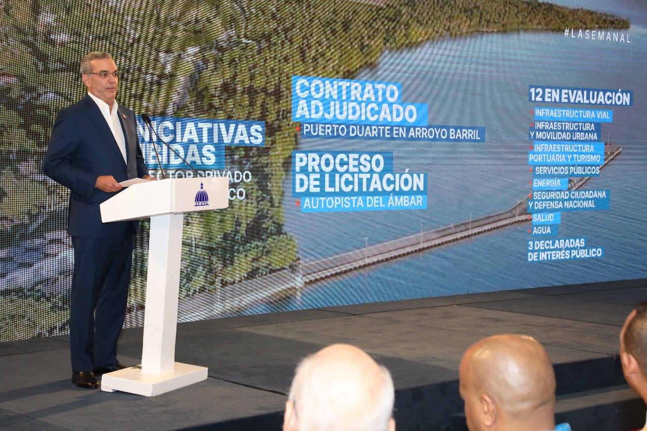 En este sentido, el jefe de Estado indicó que se han recibido 26 iniciativas, 21 del sector privado y 5 del sector público. Se adjudicó un contrato para la readecuación del Puerto Duarte en Arroyo Barril y está en proceso de licitación la Autopista del Ámbar.