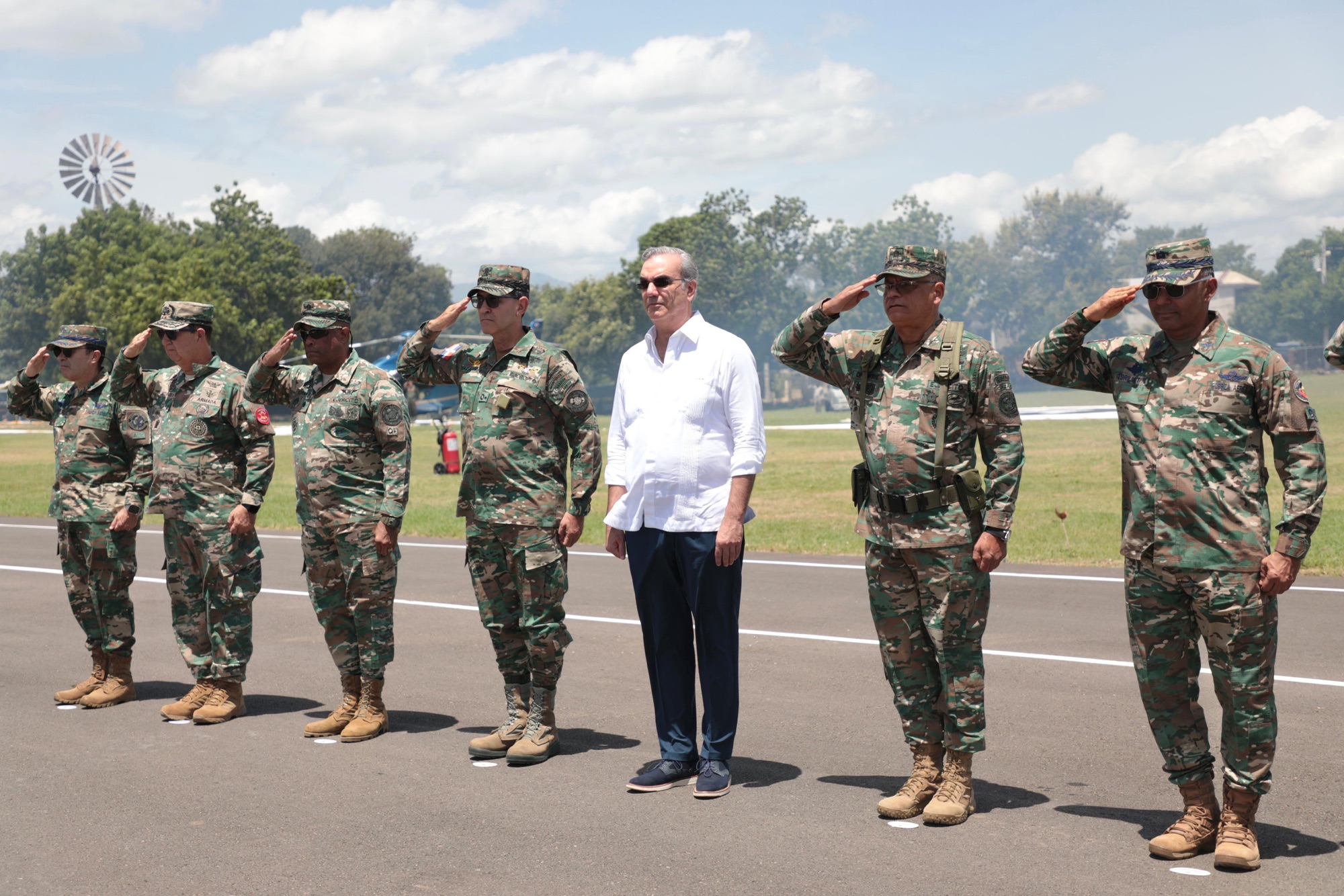 También, el comandante general de la Fuerza Aérea, mayor general Carlos Ramón Febrillet Rodríguez; el Inspector General de las Fuerzas Armadas, mayor general Miguel Rubio Báez del Ejército; los viceministros de defensa para Asuntos Militares, mayor general Julio Ernesto Florián Pérez; Asuntos Aéreos y Espaciales, mayor general piloto Leonel A. Muñoz Noboa y Asuntos Navales y Costeros, vicealmirante Ramón G. Betances Hernández.