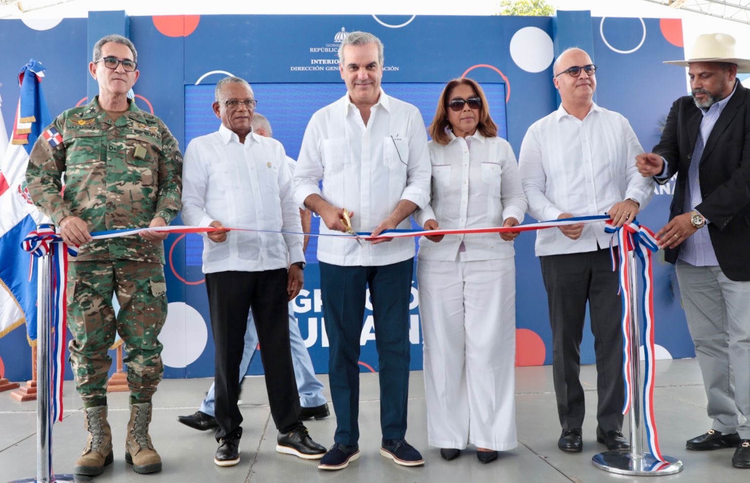Acompañaron al presidente Abinader los ministros, Administrativo interino de la Presidencia, Igor Rodríguez; de Defensa, teniente general Carlos Luciano Díaz Morfa; las gobernadoras, de Dajabón Rosalba M. Peña y de Santiago Rodríguez, Ivelis del Carmen Almonte; el alcalde de Dajabón, Santiago Riverón; los directores del Departamento Aeroportuario (DA), Víctor Pichardo y del Instituto Nacional de Recursos Hidráulicos, Olmedo Caba Romano y los senadores de Dajabón, David Sosa y de Montecristi, Ramón Pimentel.