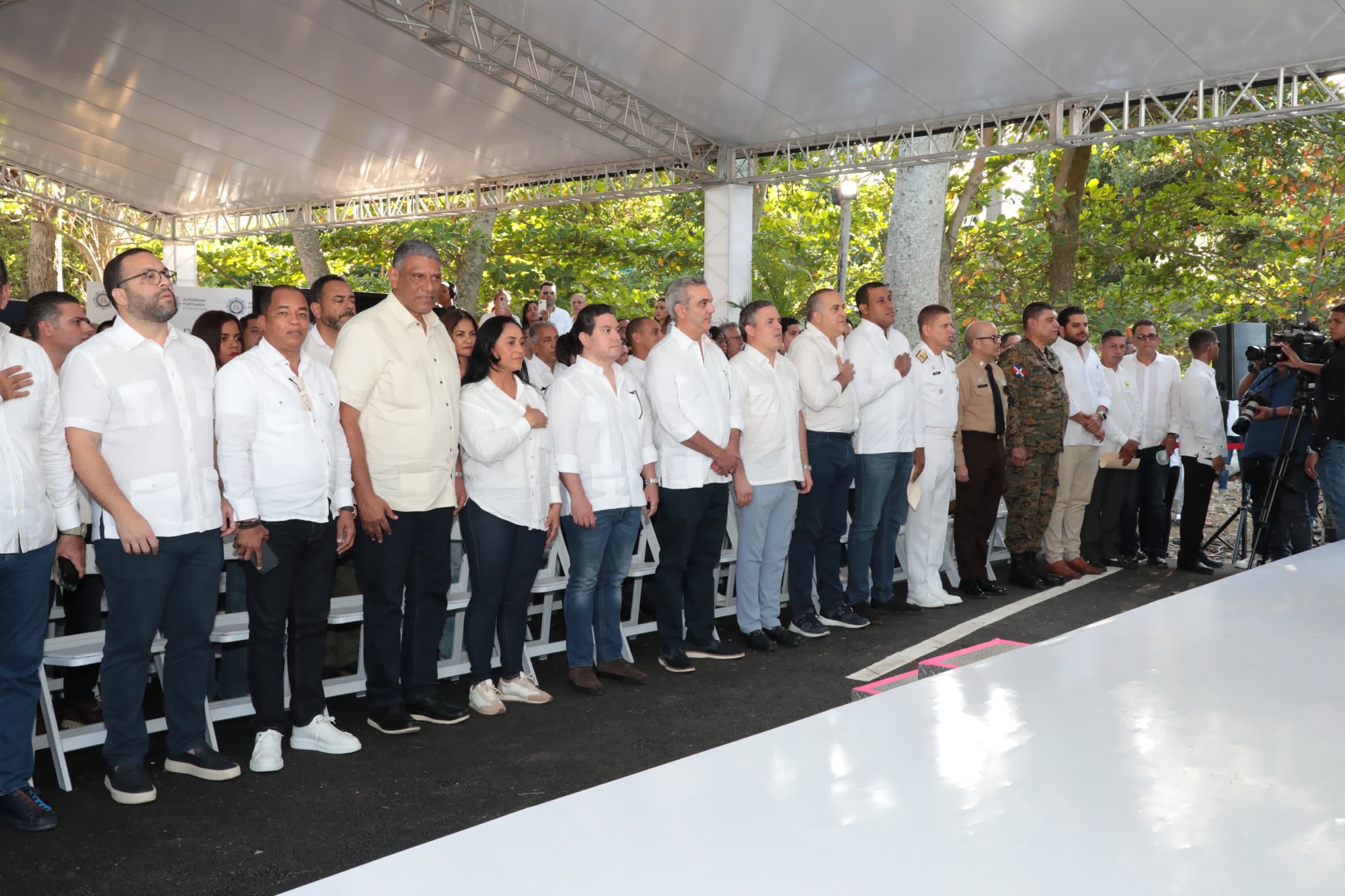 En las inauguraciones estuvieron presentes el ministro de Interior y Policía, Jesús Vásquez; la gobernadora por la provincia María Trinidad Sánchez, Gregoria Correa; el senador, Alexis Victoria Yeb; el viceministro de Defensa para Asuntos Navales y Costeros, vicealmirante Ramón Gustavo Betances Hernández; los comandantes generales de la Fuerza Aérea, mayor general Carlos Ramón Febrillet; de la Armada Dominicana, vicealmirante Agustín Morillo; el director de la ADESS, Freddy Correa; el presidente del Consejo de Apordom, Alejandro Campos; el presidente del Bandex, Juan Mustafá.