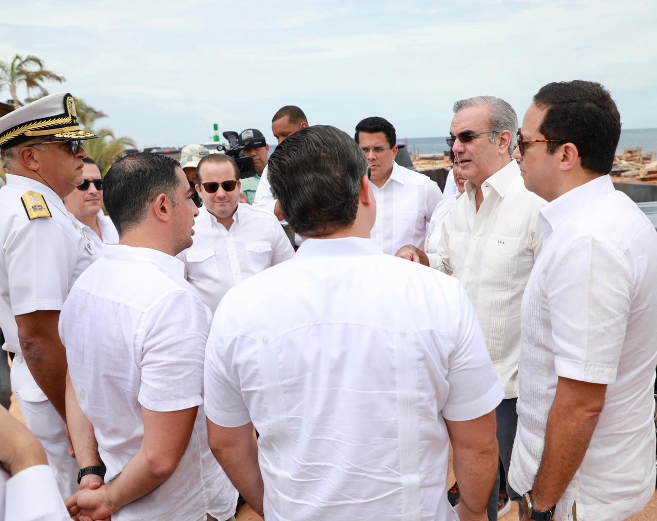 El presidente Abinader realizó el corte de cinta de la segunda fase de Port Cabo Rojo, acompañado de los ministros de la Presidencia, José Ignacio Paliza; de Turismo, David Collado; de Administración Pública y director ejecutivo del Fideicomiso Pro-Pedernales, Sigmund Freund; del director ejecutivo de la Autoridad Portuaria Dominicana, Jean Luis Rodríguez y del CEO de ITM Group, Mauricio Hamui.