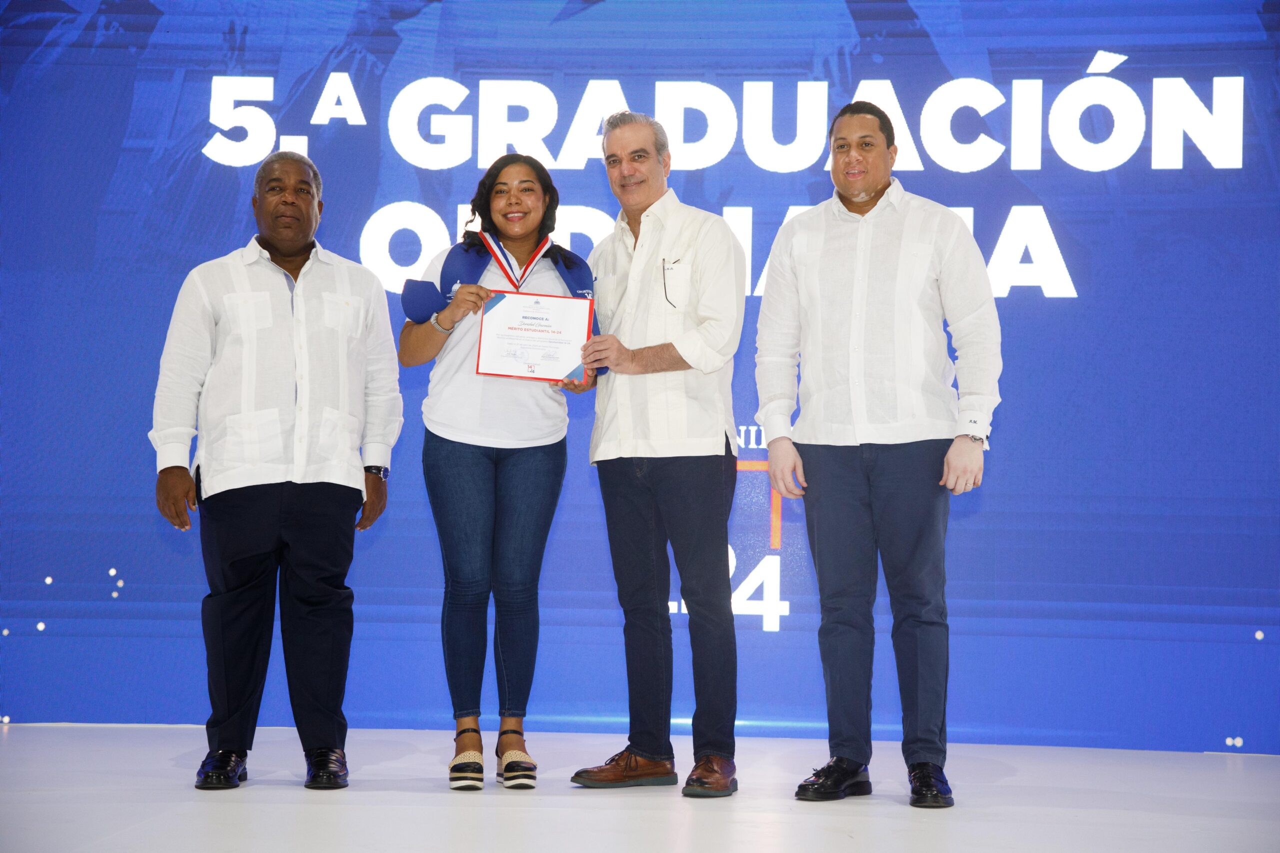 En horas de la mañana se realizó la Quinta Graduación Ordinaria del Programa Oportunidad 14-24, para un total de 4,596 beneficiarios, en una ceremonia encabezada por el presidente Abinader en el Pabellón de Combate del Centro Olímpico.