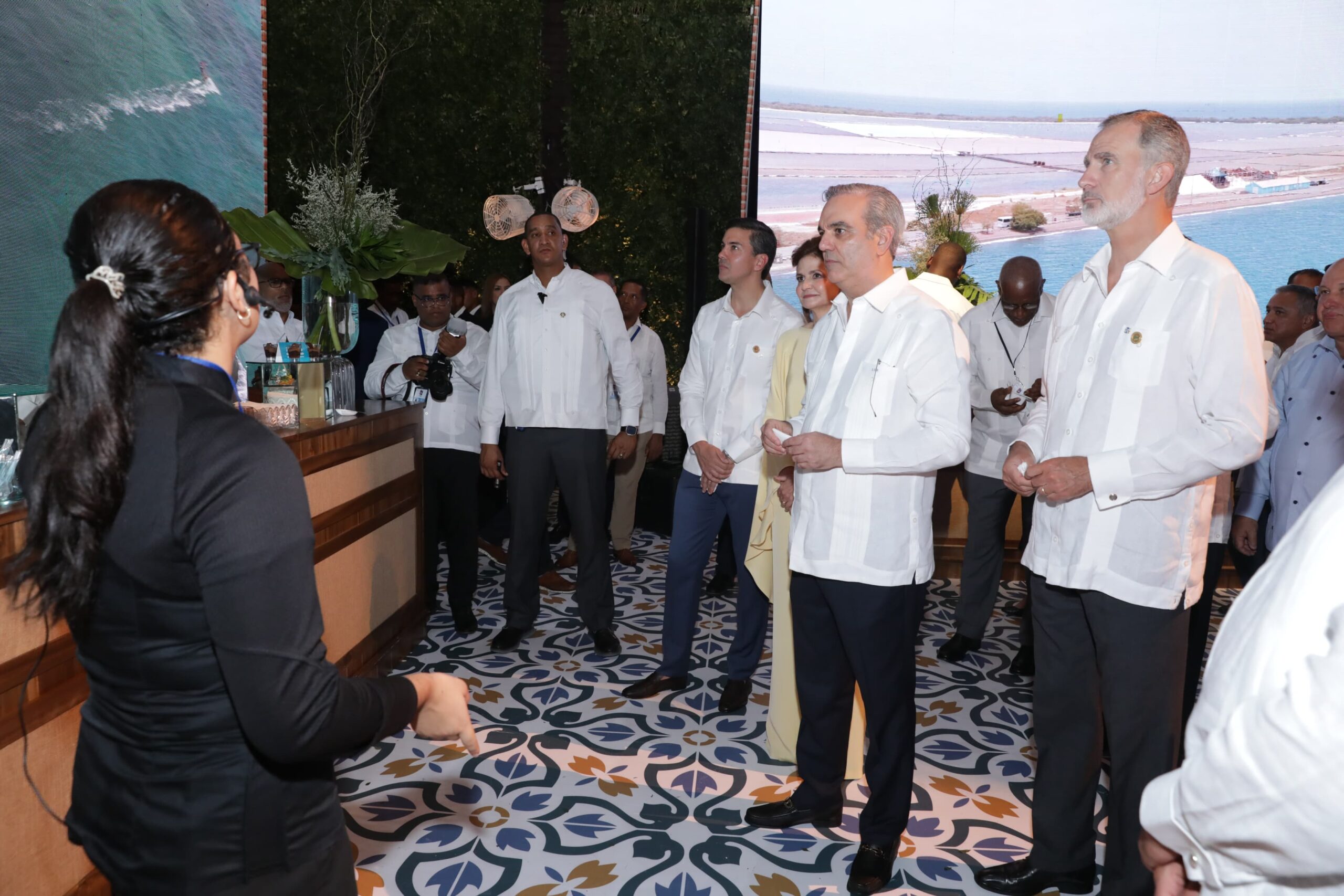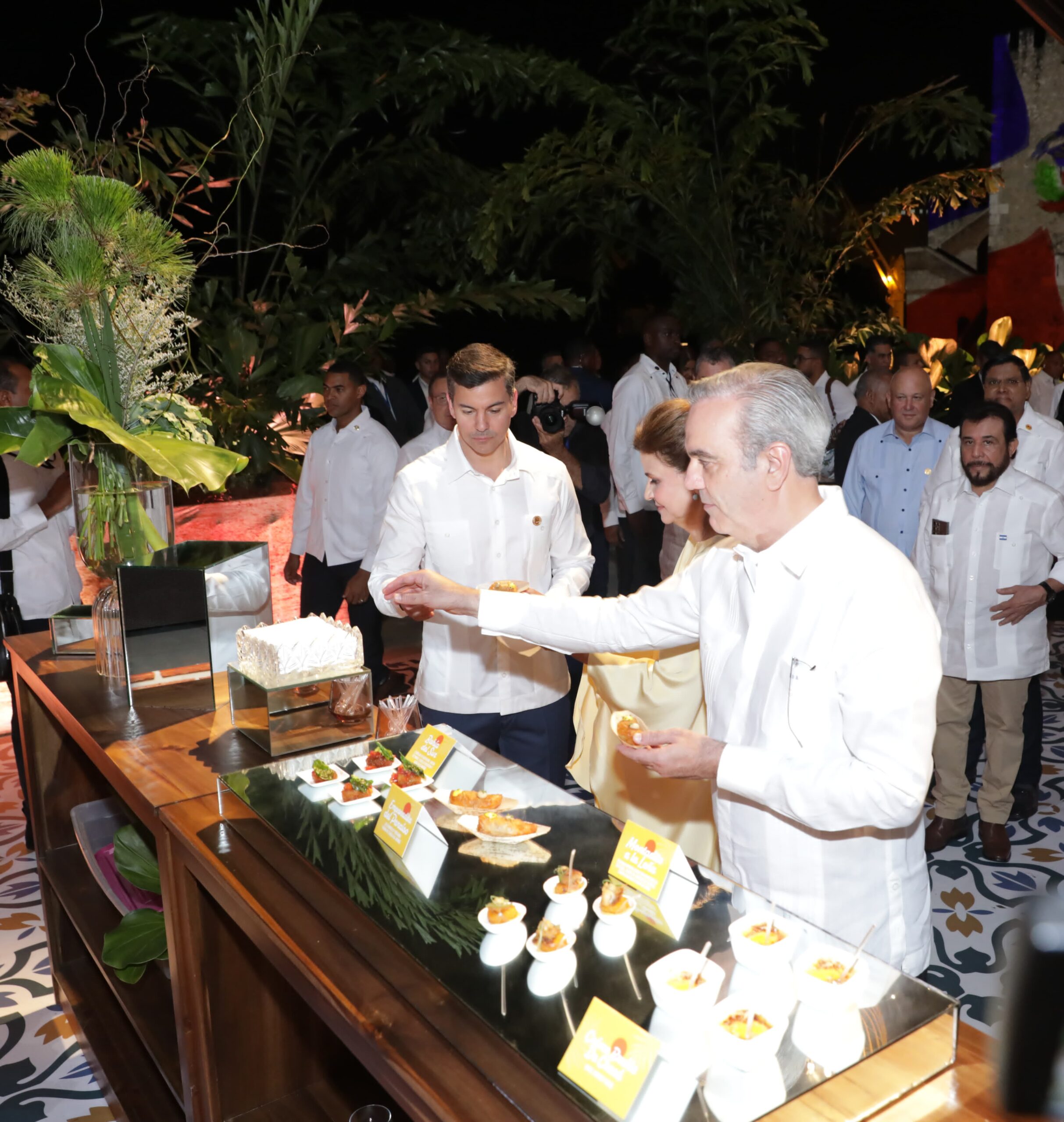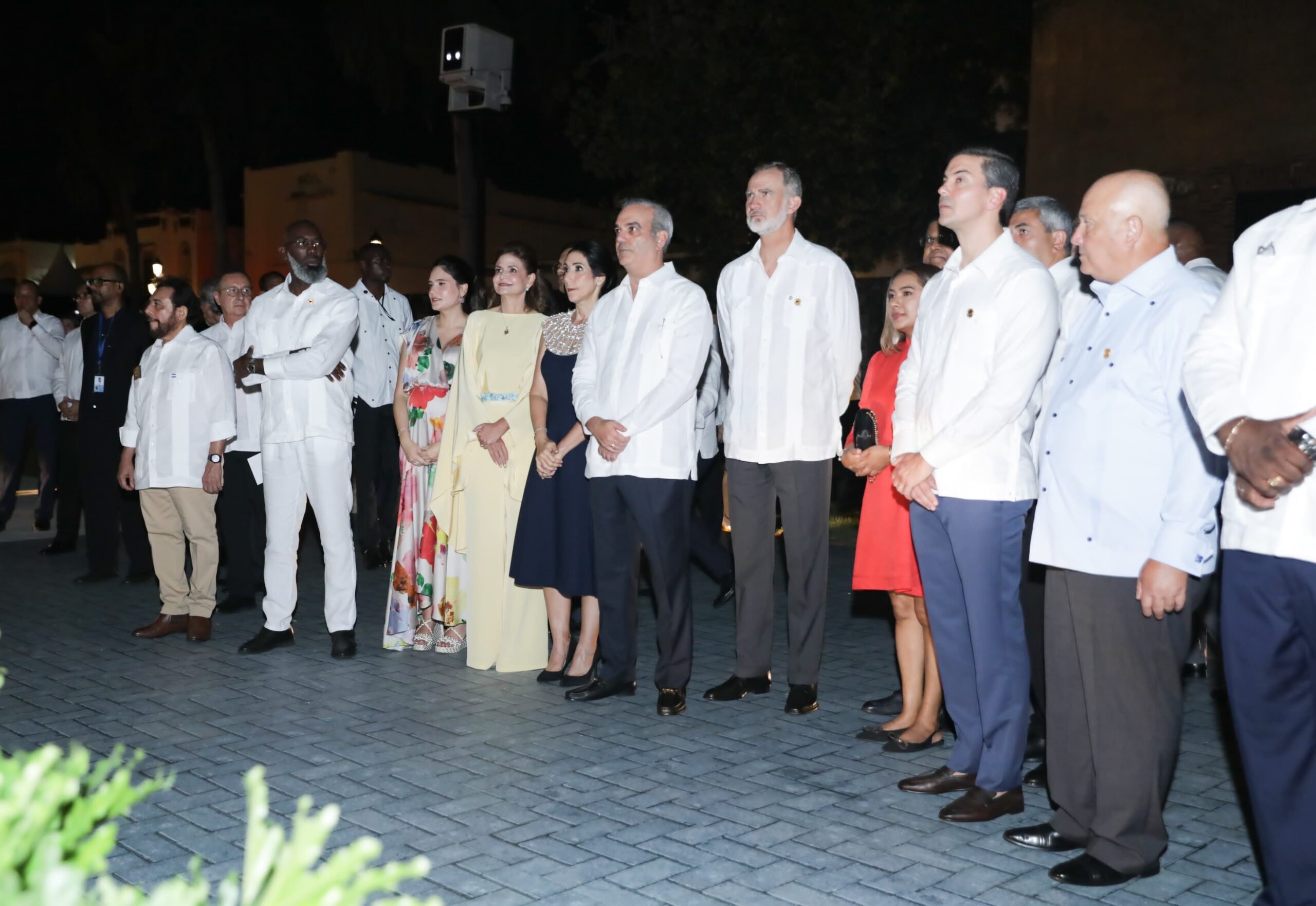 Acompañaron el jefe de Estado dominicano, el rey de España, Felipe VI; los presidentes los Santiago Peña Palacios, de Paraguay; José Raúl Mulino Quintero, de Panamá; Bernardo Arévalo, de Guatemala; Chandrikapersad Santokhi, de Suriname; el general Umaro Sissoco Embalo, de Guinea Bissau; Mohamed Irfaan Ali, de Guyana; Gustavo Petro Urrego, de Colombia, y Luis Lacalle Pou, de Uruguay.