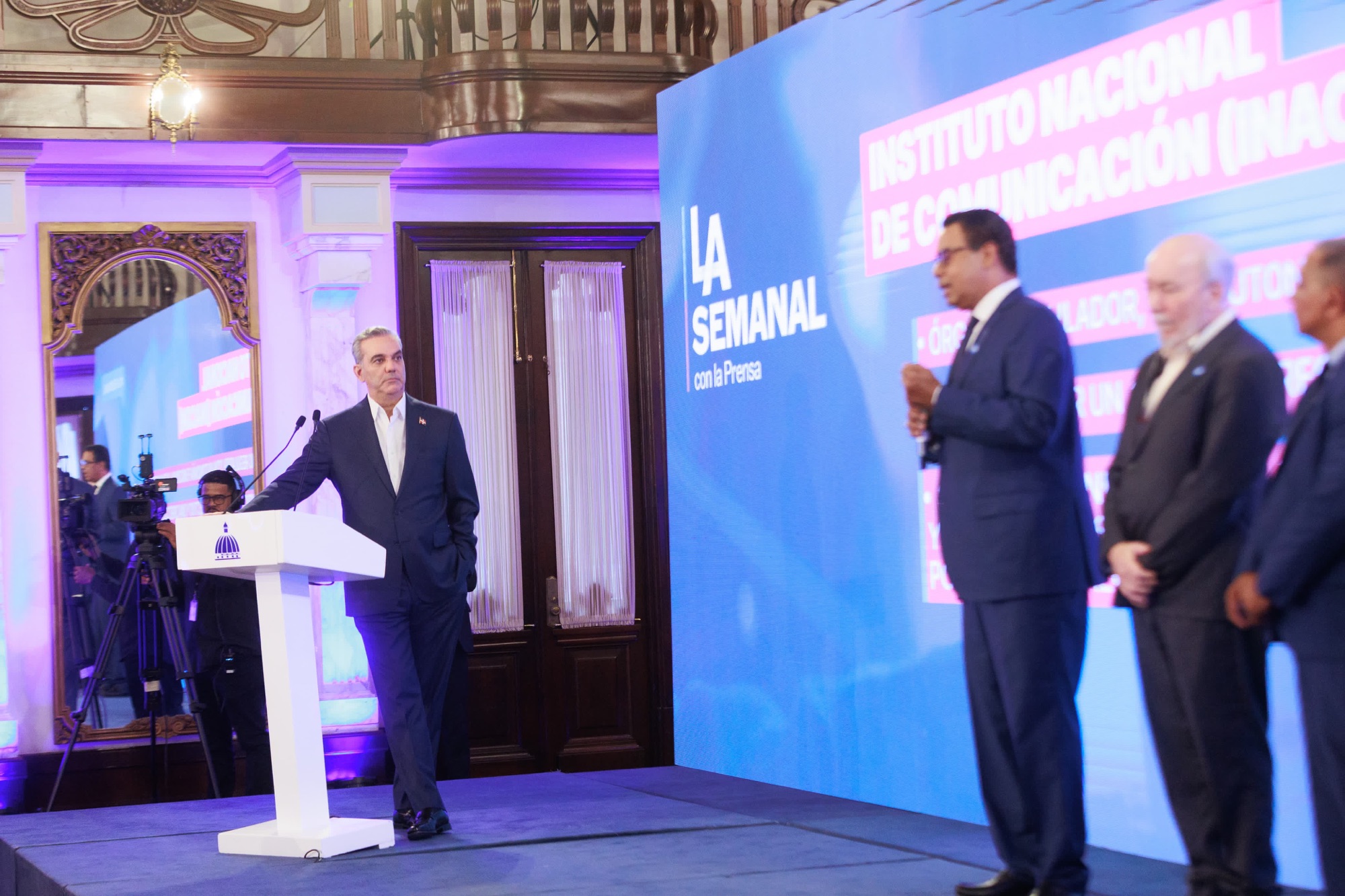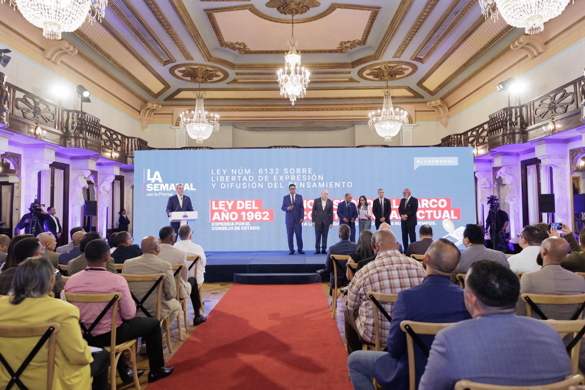El presidente Luis Abinader presentó este lunes ante miembros de la prensa nacional, diversos aspectos que integran el anteproyecto de Ley de Libertad de Expresión, Medios Audiovisuales y Plataformas Digitales que busca actualizar la legislación vigente sobre la libertad de expresión.
