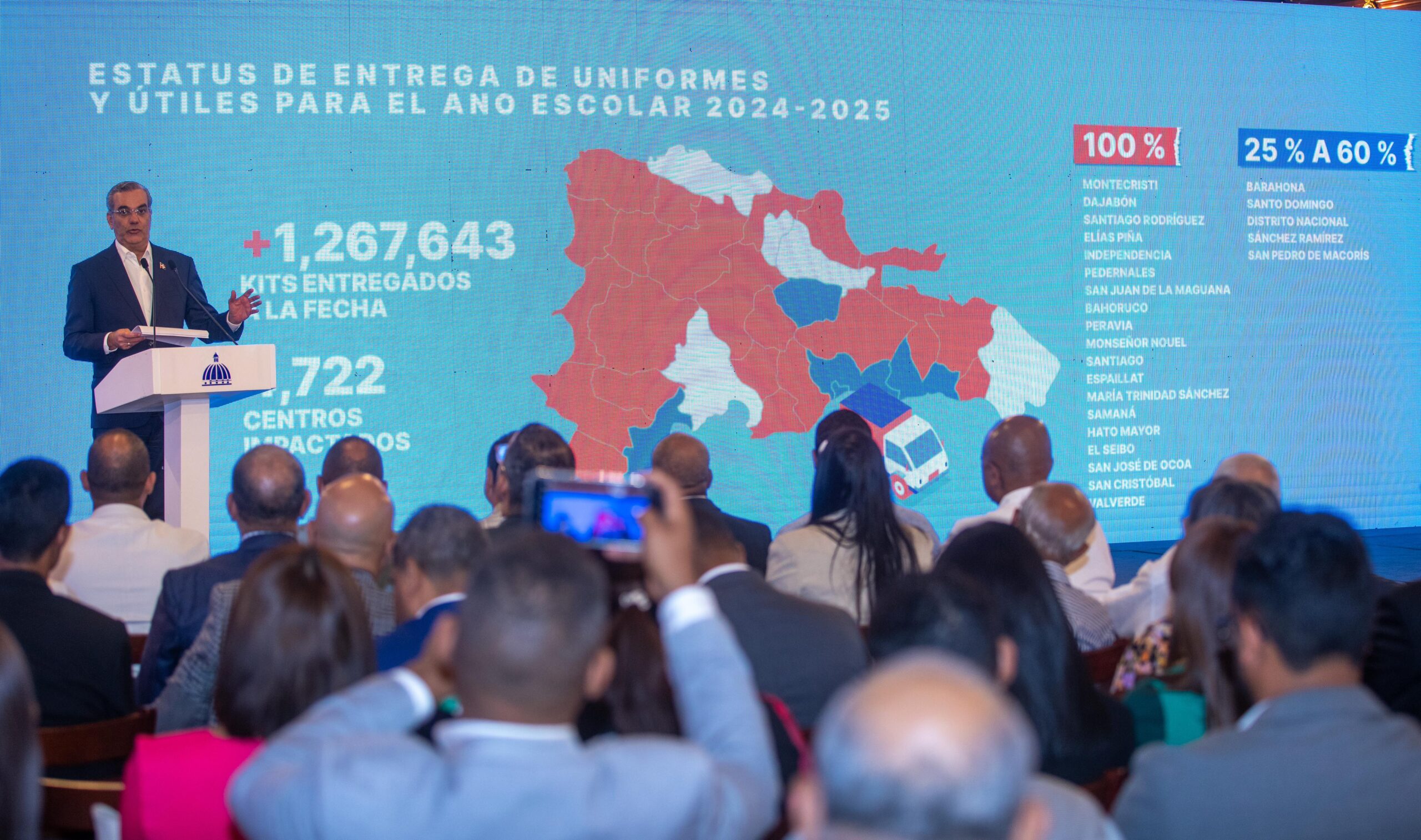 Al respecto, el gobernante señaló que habrá más de 720 mil familias beneficiadas y un ahorro por kit de RD$5,000 en polocher, pantalón, medias, zapatos, mochilas, cuadernos, regla, lápiz y cartabones.