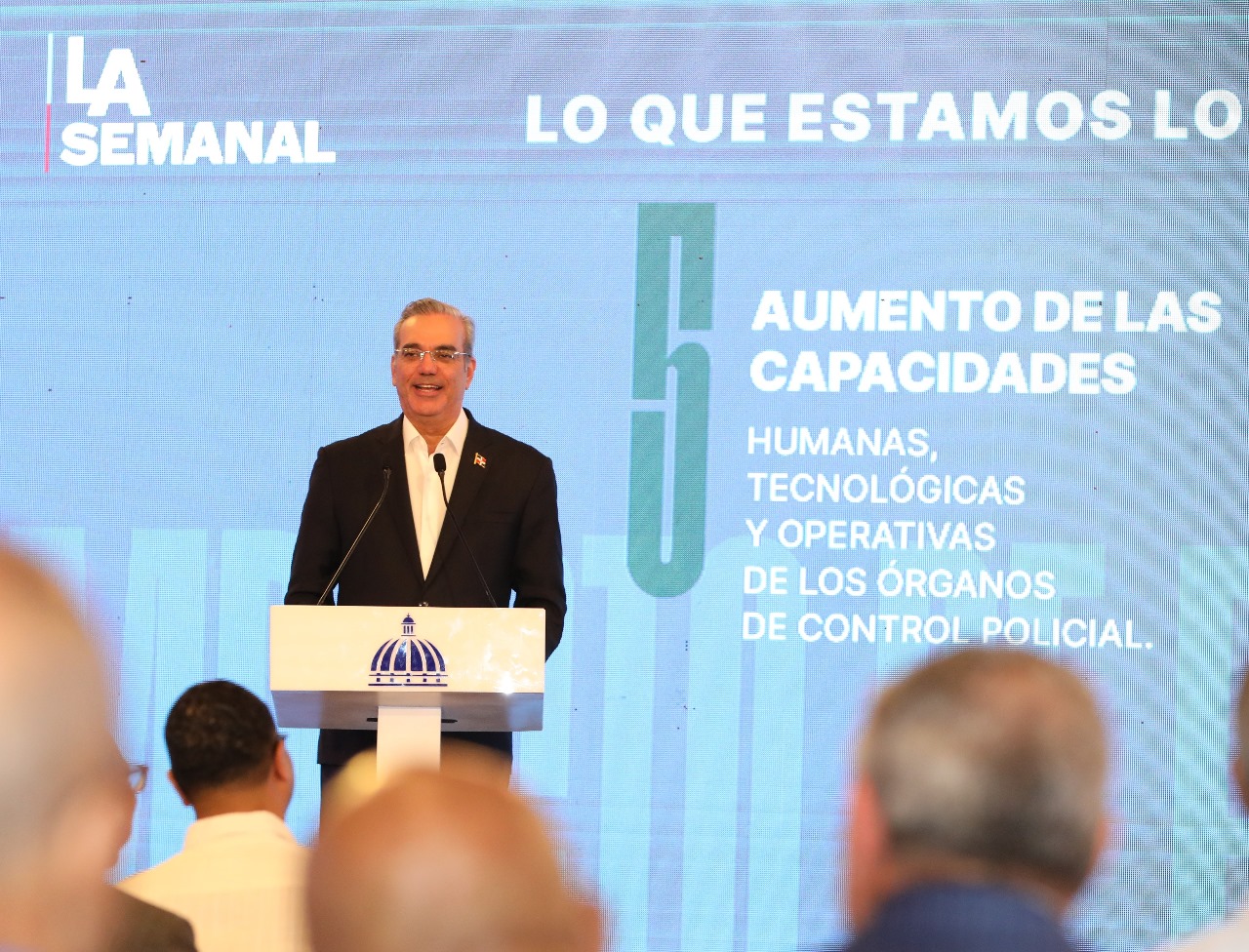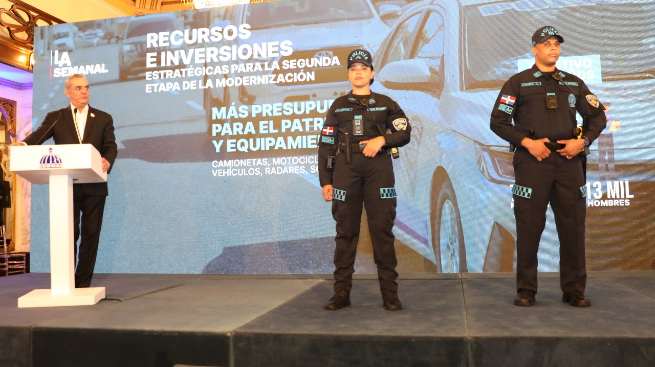 El presidente Luis Abinader presentó este lunes en LA Semanal con la Prensa, la nueva imagen de la Policía Nacional, mostrando el prototipo de nuevos uniformes y anunciando más medidas de modernización en todas las áreas.