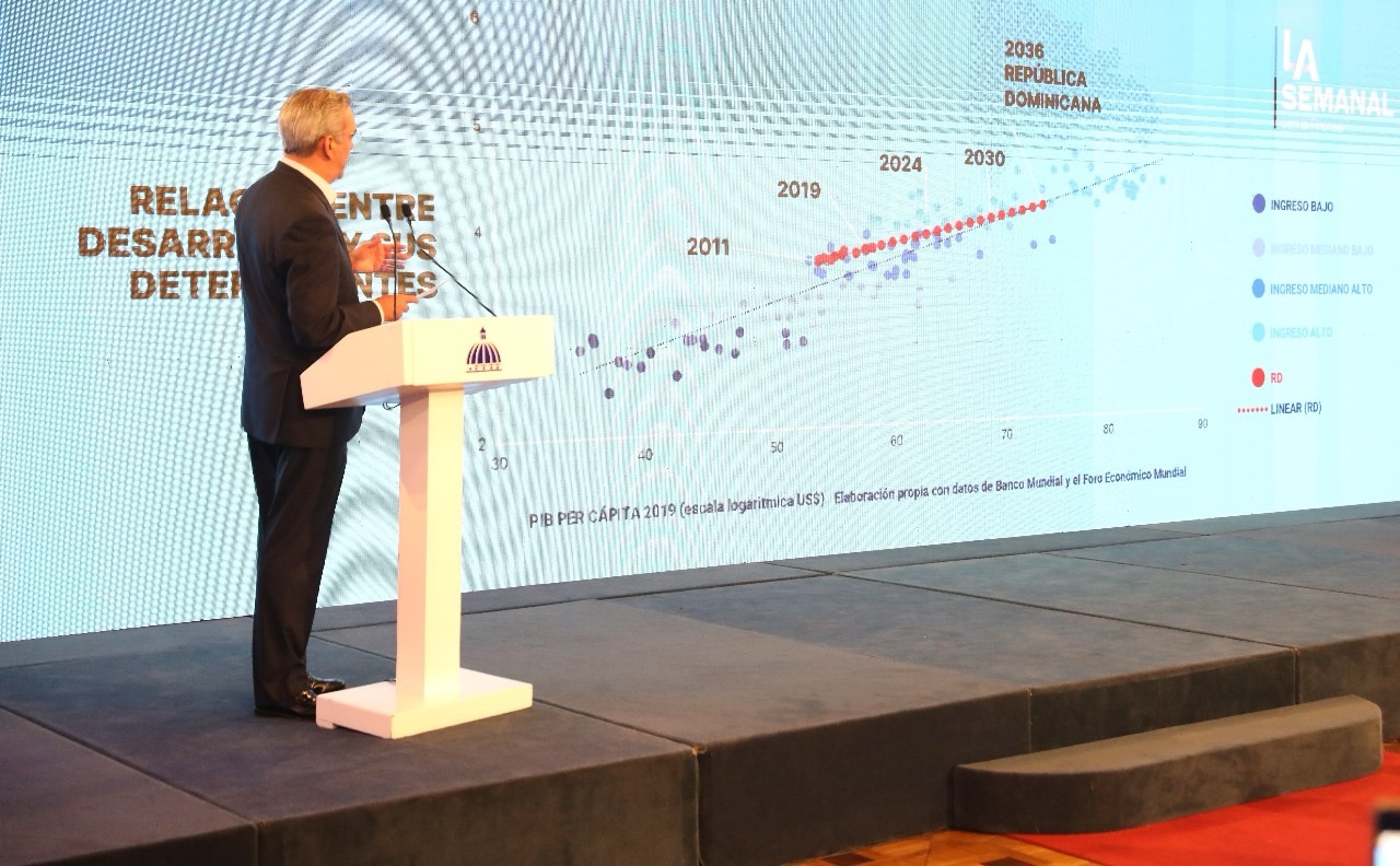 Asimismo, el jefe de Estado informó que el gobierno se propone convertir a República Dominicana en un país plenamente desarrollado en una década, «con la meta de duplicar su PIB a 2036».