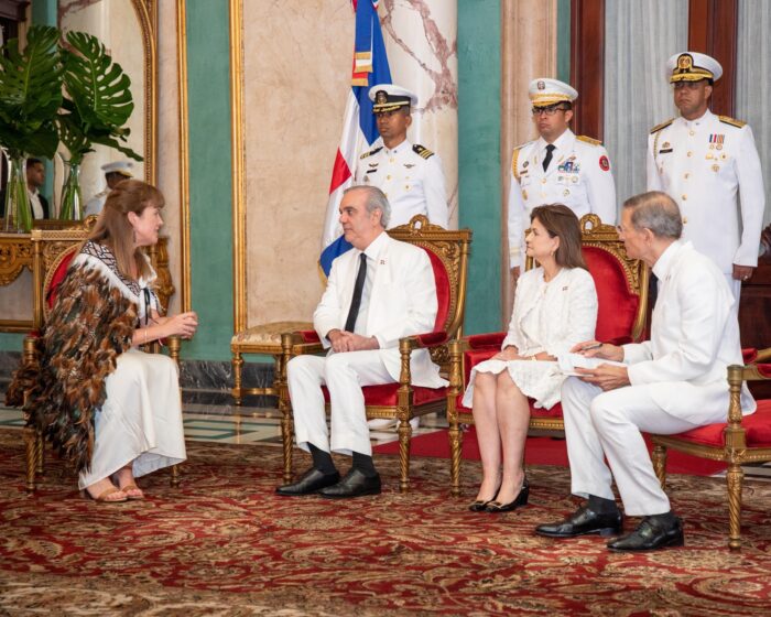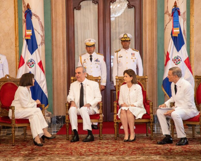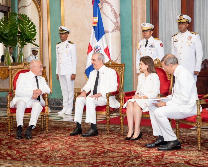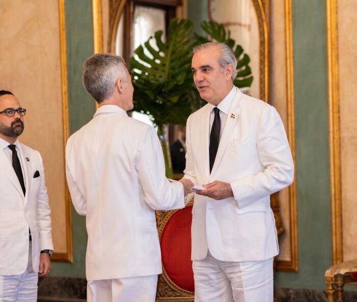 El presidente Luis Abinader, junto con la vicepresidenta Raquel Peña y el ministro de Relaciones Exteriores, Roberto Álvarez, recibió este miércoles las cartas credenciales de seis nuevos embajadores acreditados en la República Dominicana, quienes asumen sus funciones con una amplia trayectoria en el servicio exterior y en diversos ámbitos de la cooperación internacional.