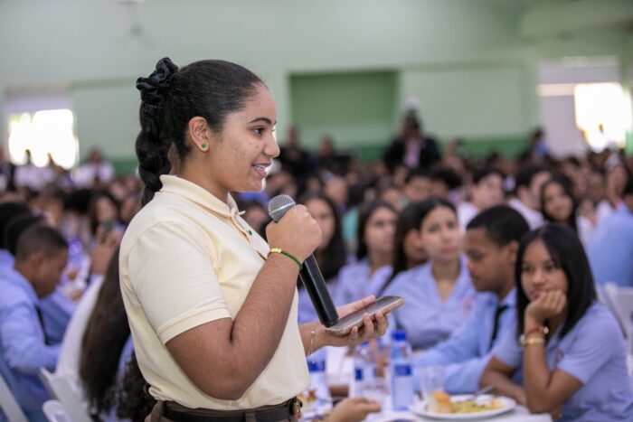 Además, presentó el voluntariado estudiantil “Dominicanos al 100”, orientado a promover ciudadanía, liderazgo y valores, e invitó a los jóvenes a participar en debates, modelo de Naciones Unidas, olimpíadas académicas y programas de robótica y tecnología.