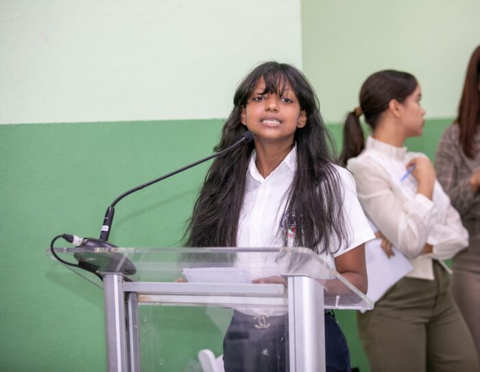 Las palabras de bienvenida estuvieron a cargo de la estudiante Melani García Jiménez, del Politécnico Santa Clara de Asís, quien expresó su agradecimiento al presidente Luis Abinader por el respaldo brindado al sector educativo.