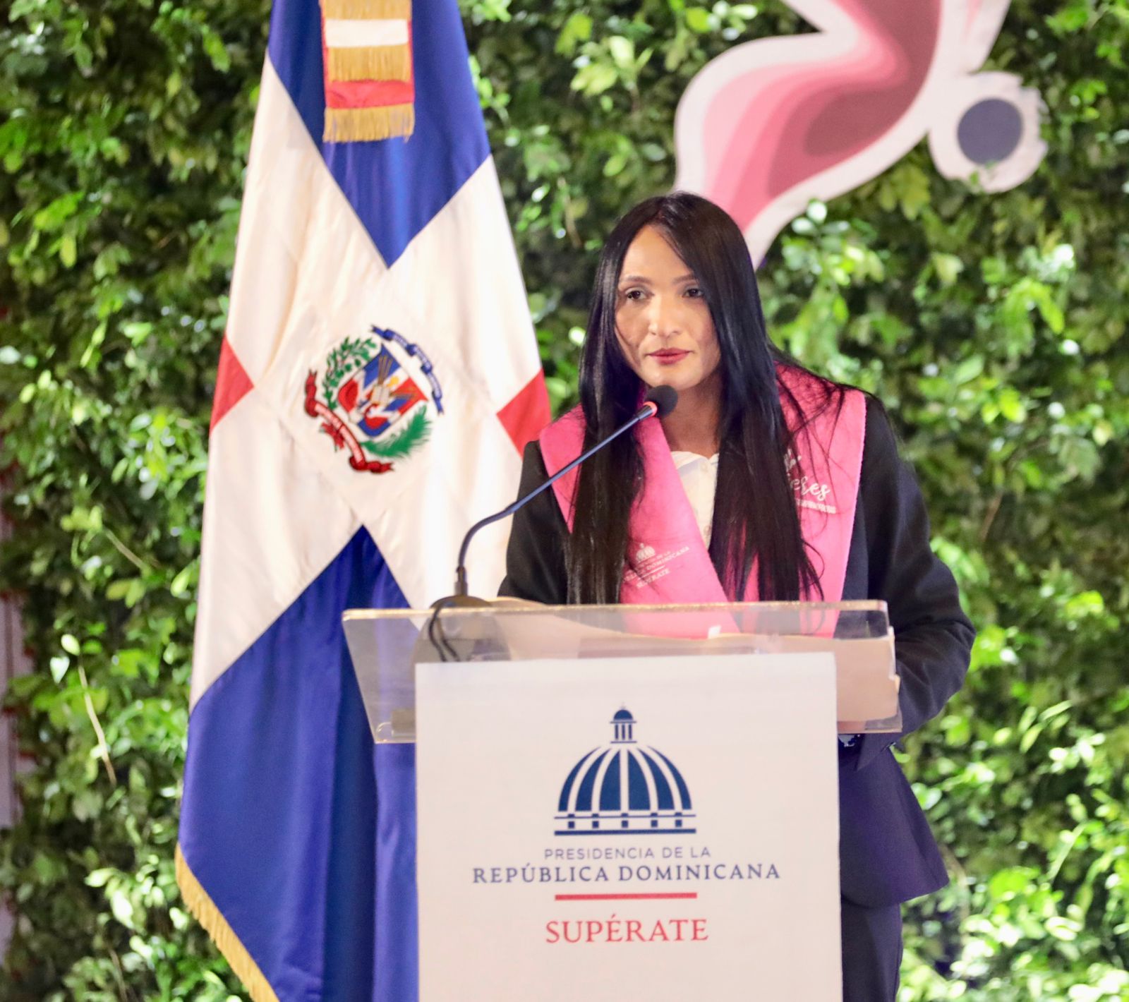 En nombre de las graduandas habló Yuddy Belkis Suárez Abreu, quien instó a las mujeres dominicanas a seguir luchando por sus sueños para lograr todo lo que se propongan y sean como ella una mujer SUPEREmprendedoras.