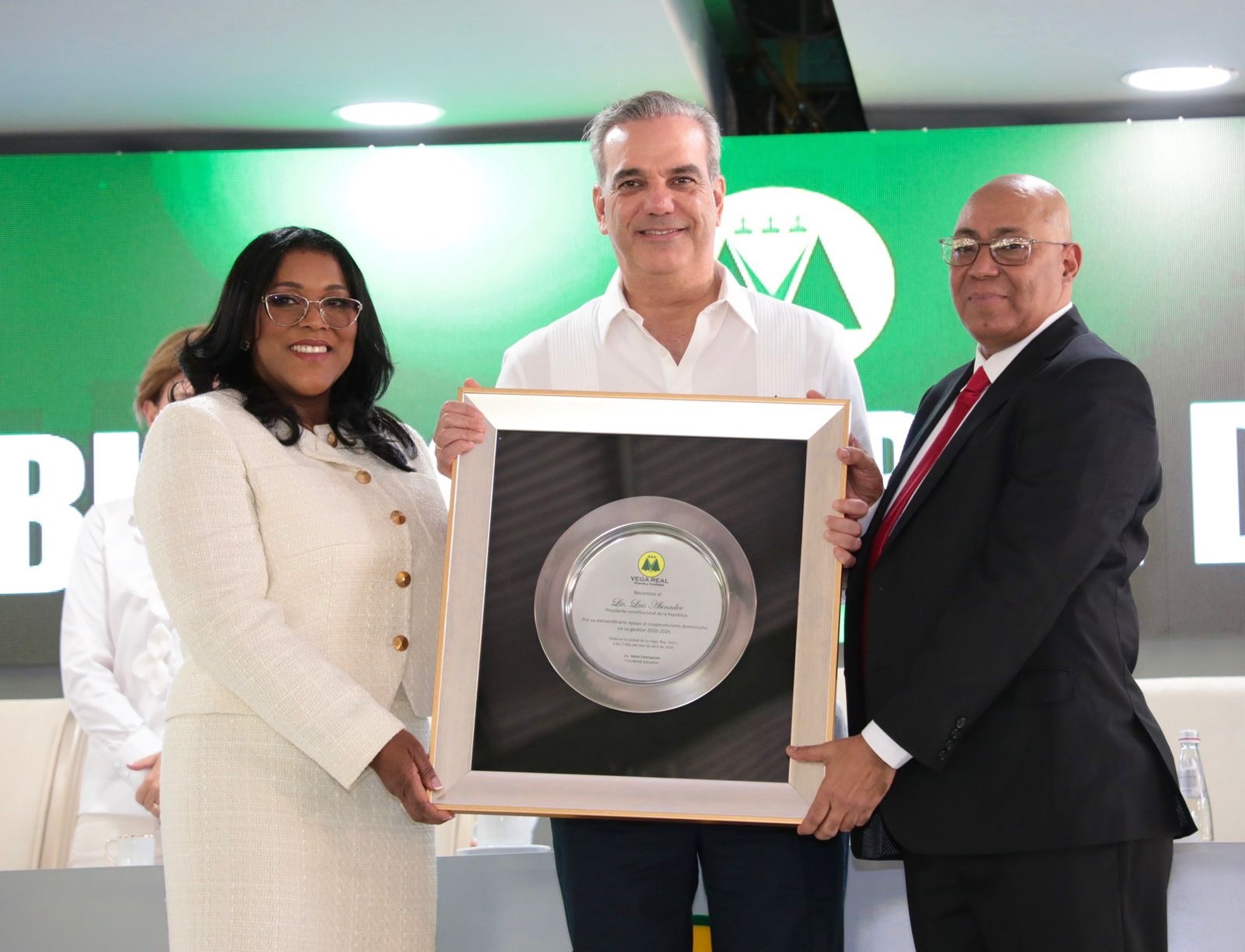 La Cooperativa Vega Real, reconoció al presidente Abinader por su extraordinario apoyo al cooperativismo dominicano de su gestión 2020-2024.