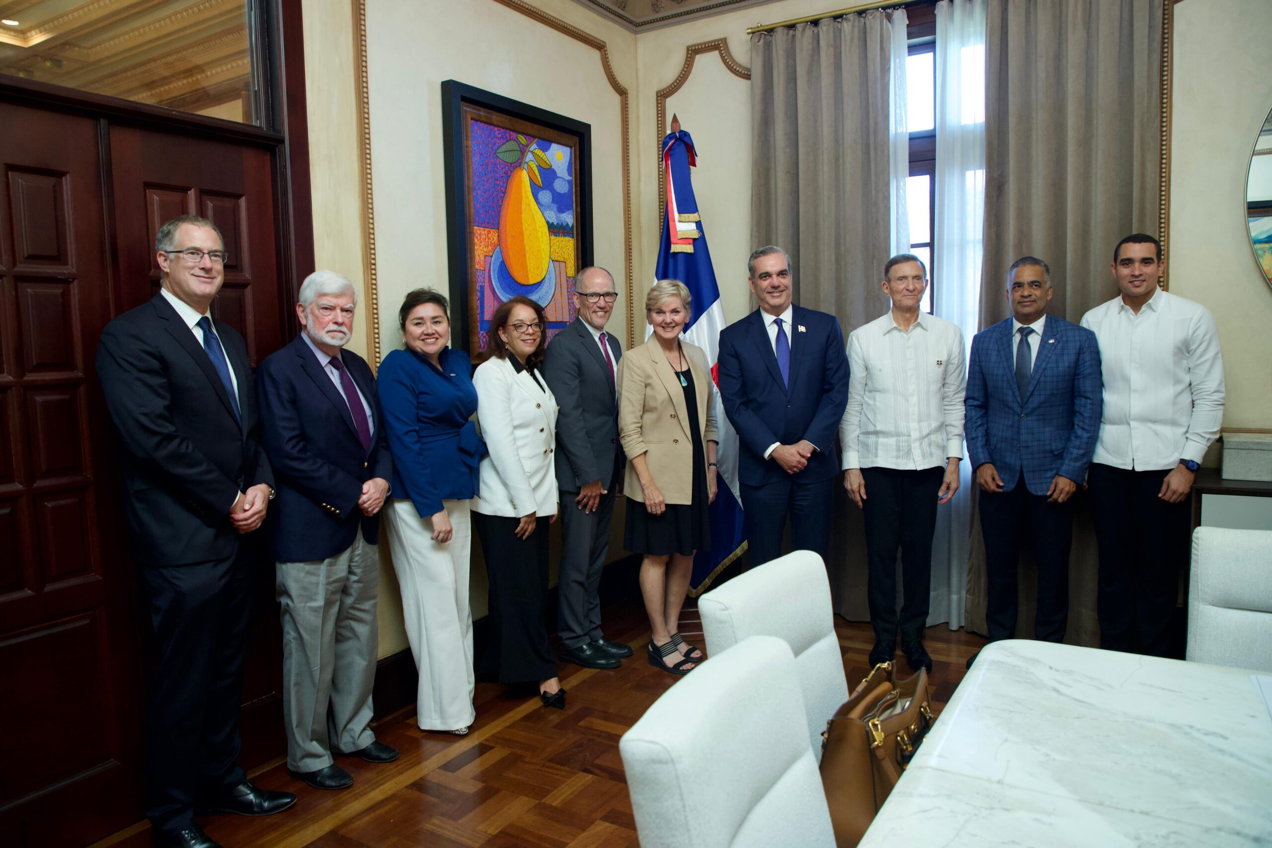 En la reunión estuvieron presentes la Encargada de Negocios de la Embajada de Estados Unidos en el país, Patricia Aguilera; el asistente del Presidente y director de la oficina de asuntos intergubernamentales, Tom Pérez; la secretaria adjunta para el desarrollo económico del departamento de comercio, Alejandra Castillo; el asesor especial del presidente para las américas, Chris Dodd y el director superior para
