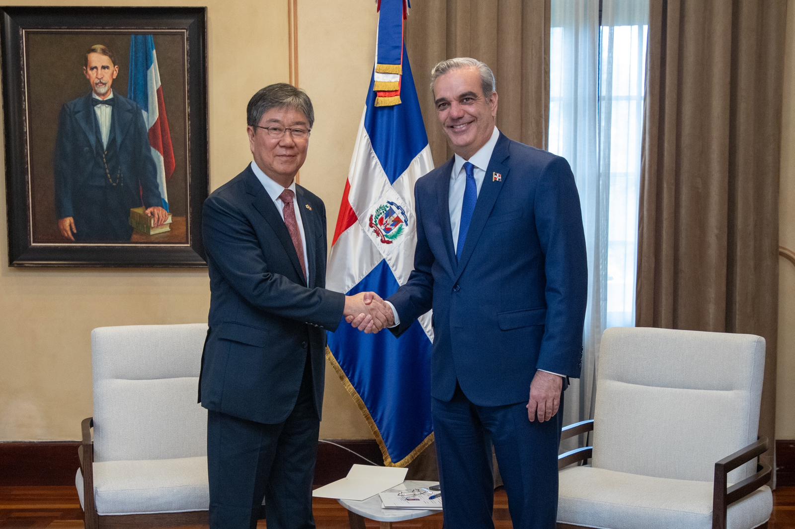 Mientras que, la delegación de Corea estuvo compuesta por el enviado especial Presidencial, Dae Ki KIM; el embajador de Corea, Sang Ryul LEE; el primer Secretario de la Embajada, Taeshin HA; el subdirector general de Asuntos para Latinoamérica y El Caribe del Ministerio de Asuntos Exteriores, Jun Ho CHOI; la subdirectora de Asuntos para Latinoamérica y El Caribe del Ministerio de Asuntos Exteriores, Eunju OH y la traductora del Ministerio de Asuntos Exteriores de Corea, Yuri LEE.