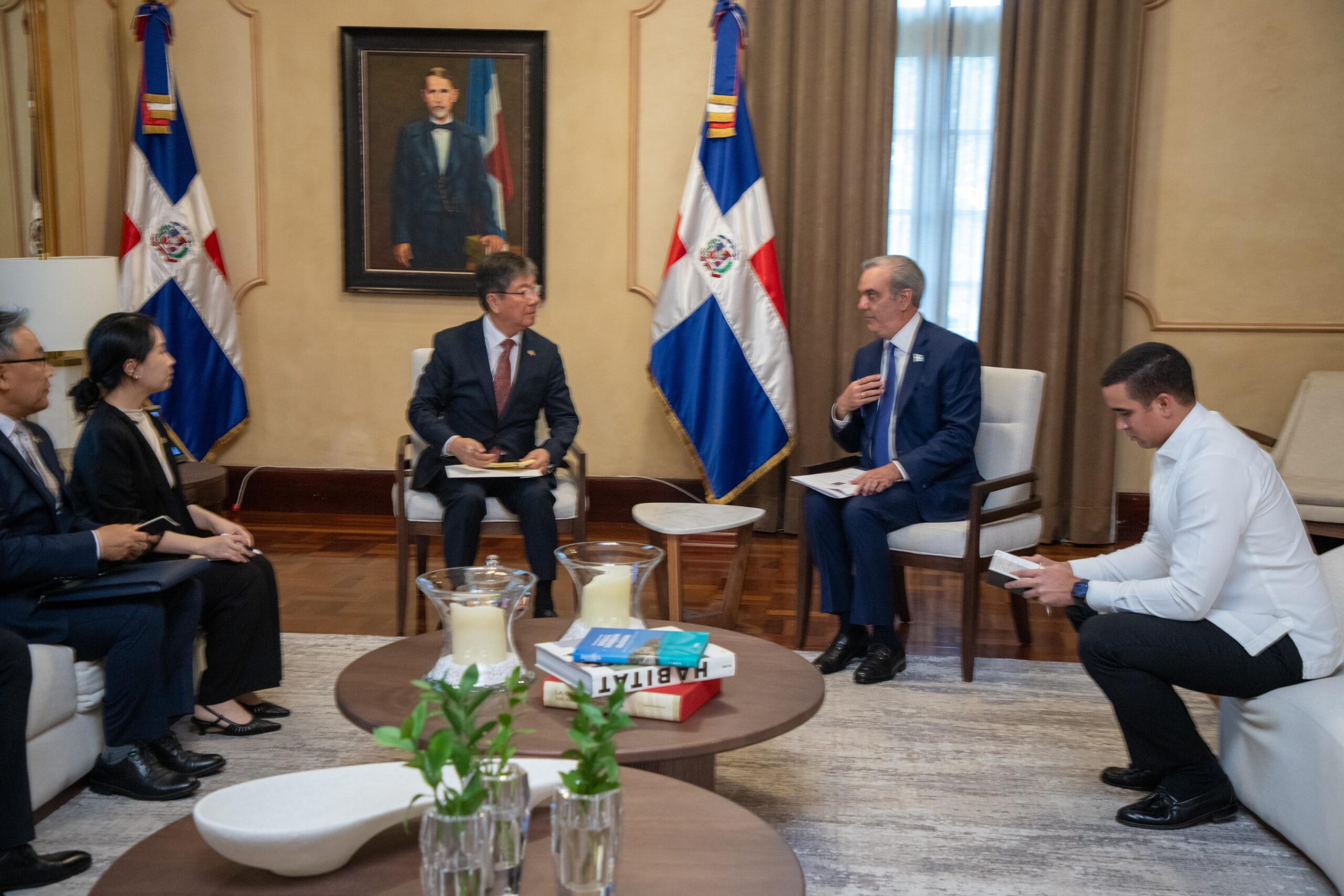 El gobernante dominicano también sostuvo una reunión bilateral con el Ministro de Industria y Tecnología Informática de China, Jin Zhuanglong, en el Salón Privado del Palacio Nacional.