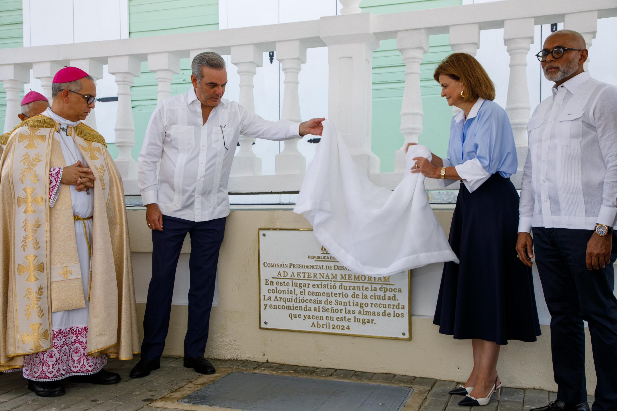 Previo al tedeum, el mandatario y la vicepresidenta presidieron el acto de develamiento de una tarja histórica conmemorativa al primer cementerio de Santiago.