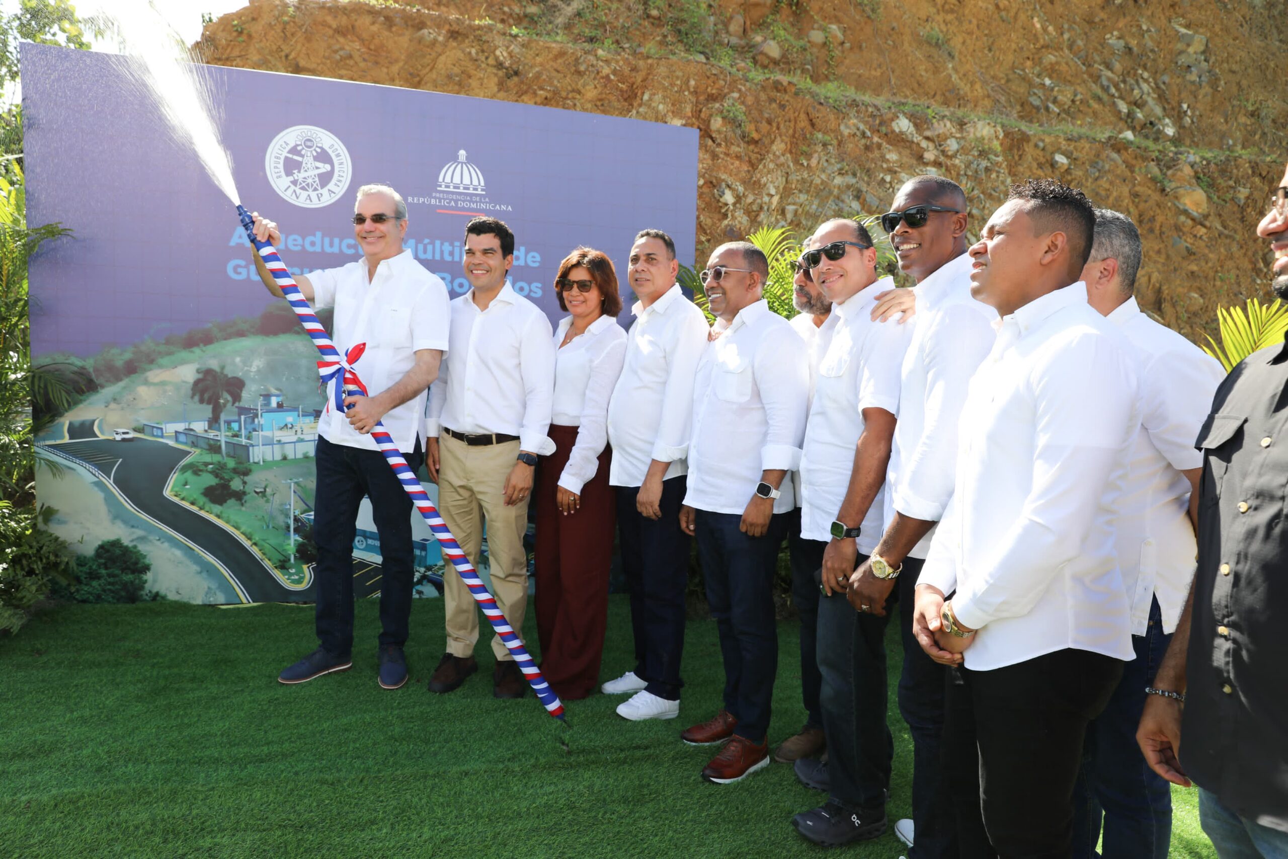 El presidente Luis Abinader y Wellington Arnaud, director ejecutivo del Instituto Nacional de Aguas Potables y Alcantarillados (INAPA), inauguraron el Acueducto Múltiple Guanuma-Los Botados, provincia Monte Plata, que garantizará el servicio de agua, en cantidad, calidad y presión, a los residentes de la demarcación.