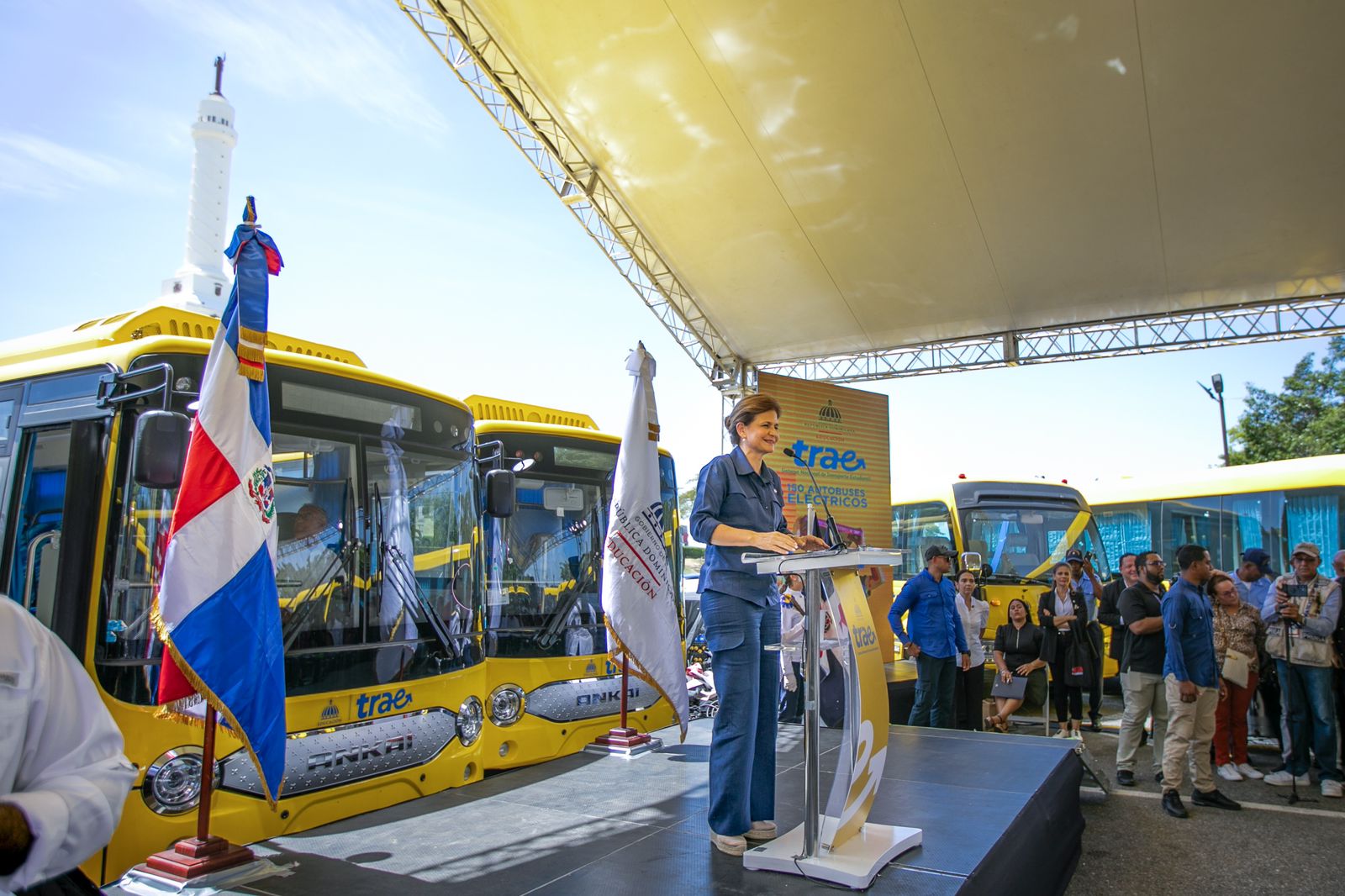 La vicepresidenta Raquel Peña manifestó que con la puesta en marcha del TRAE en Santiago, el Gobierno avanza con firmeza hacia la transformación del sistema educativo y responde a la necesidad de asegurar que cada estudiante llegue a la escuela de manera segura, puntual y eficiente.