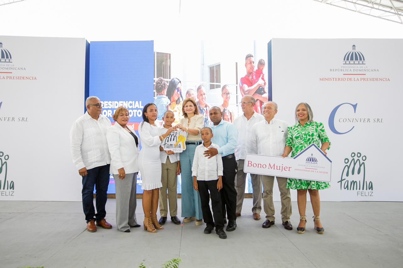 Las viviendas corresponden al Residencial Flor de Loto II, ubicado en el municipio Pedro Brand, obra desarrollada por la constructora Coninver, con una inversión superior a los 195 millones, de los cuales el Ministerio de la Mujer, destinó la suma RD$2,000,000 por medio del Bono Mujer, que benefició a diez jefas de hogar.