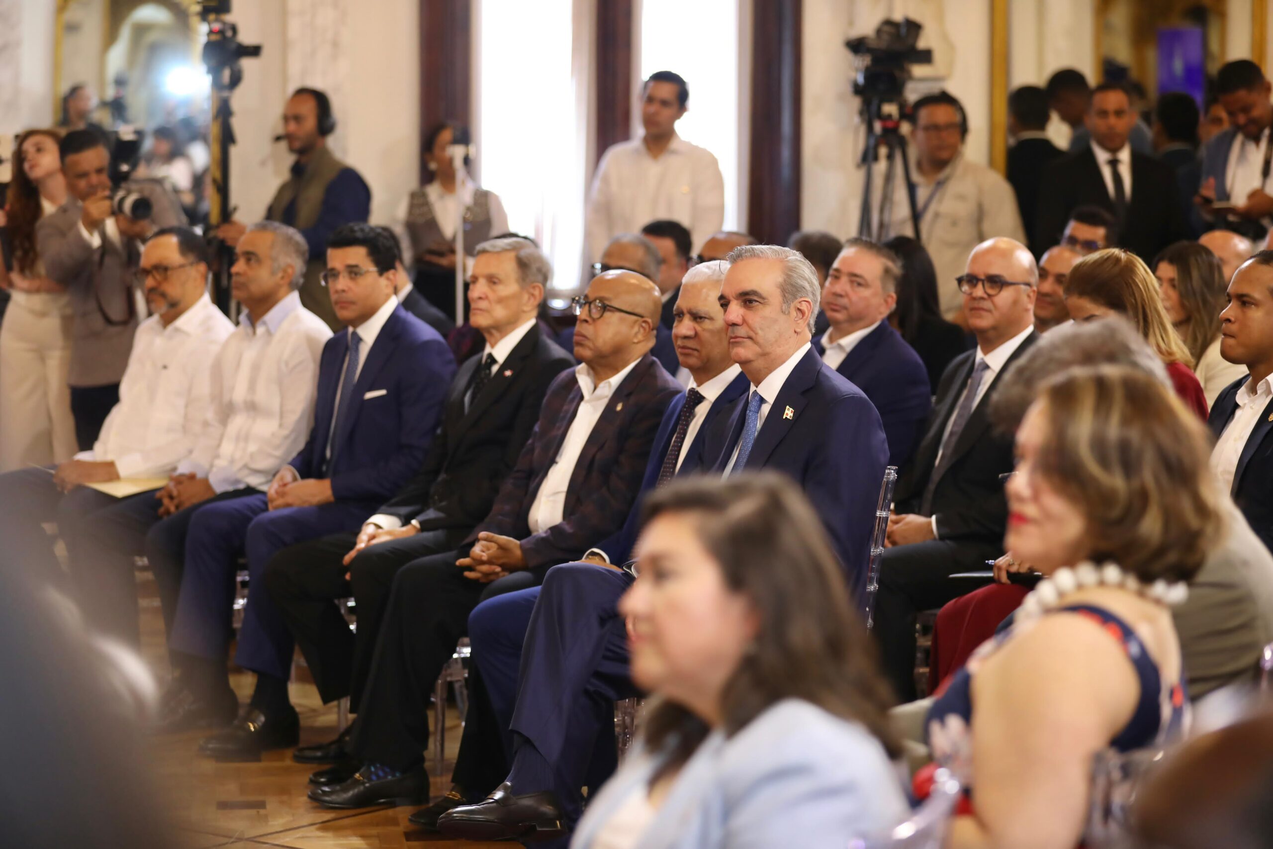 Estuvieron presentes los presidentes del Senado, Ricardo De Los Santos y de la Cámara de Diputados, Alfredo Pacheco; el ministro de la Presidencia, Joel Santos; el consultor Jurídico del Poder Ejecutivo, Antoliano Peralta; la subsecretaria de Estado Adjunto de los Estados Unidos para Asuntos de Transporte Heidi Gómez y la encargada de negocios de la embajada de los Estados Unidos, Patricia Aguilera; el director de Aviación Civil (Designado) Igor Rodríguez; el director de Aviación Civil, Héctor Porcella; el presidente de la Junta de Aviación, José Marte Piantini, y el director aeroportuario, Víctor Pichardo y el presidente de la DNCD, vicealmirante José Manuel Cabrera Ulloa.