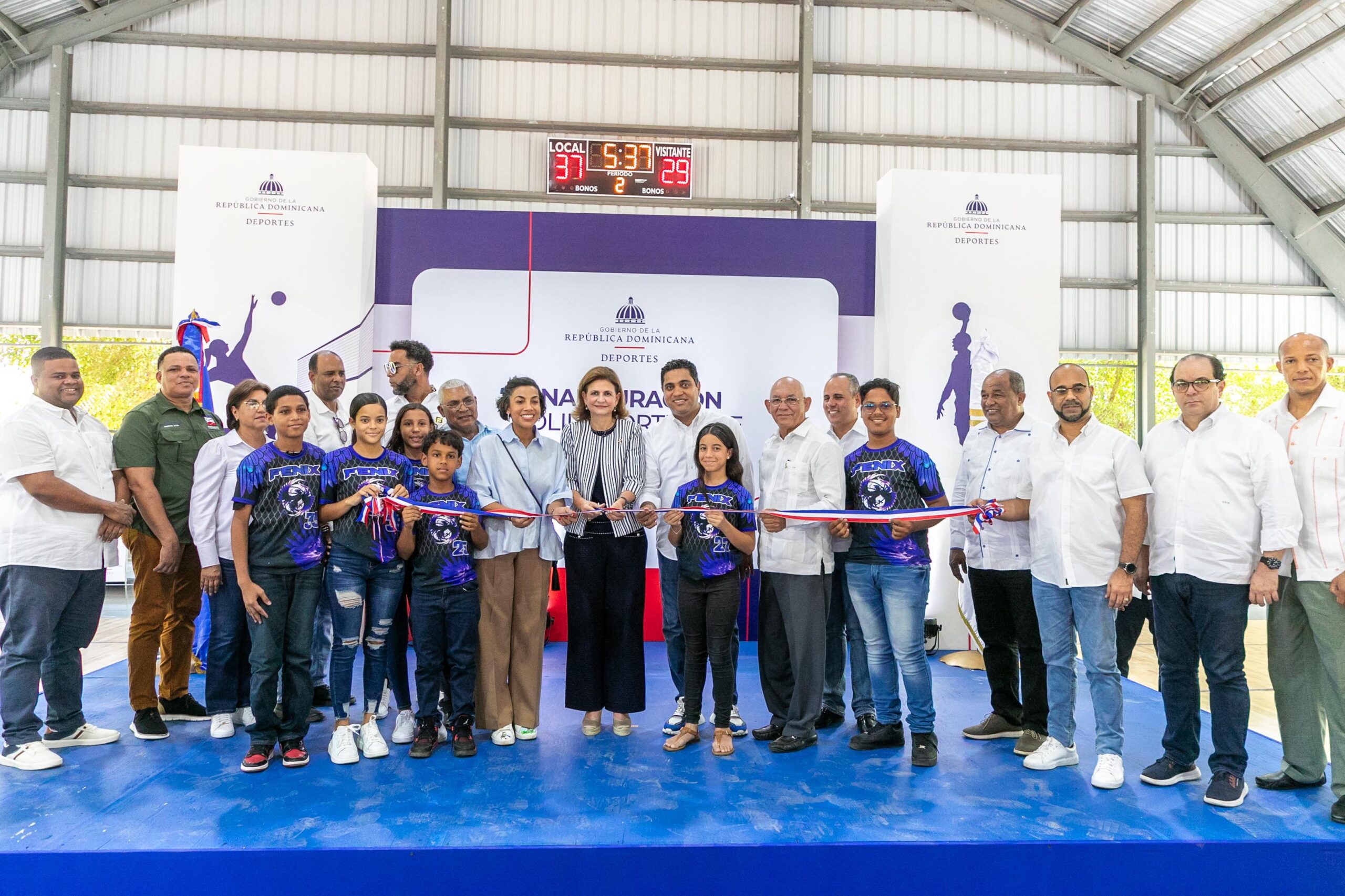 En tanto, en Santiago Rodríguez Raquel Peña entregó el Bajo Techo de Sabaneta que cuenta con luminarias tipo led, techo de aluzinc, piso sintético, gradas, canastos de baloncesto móviles, salón de reuniones multiusos, baños, entre otras facilidades.