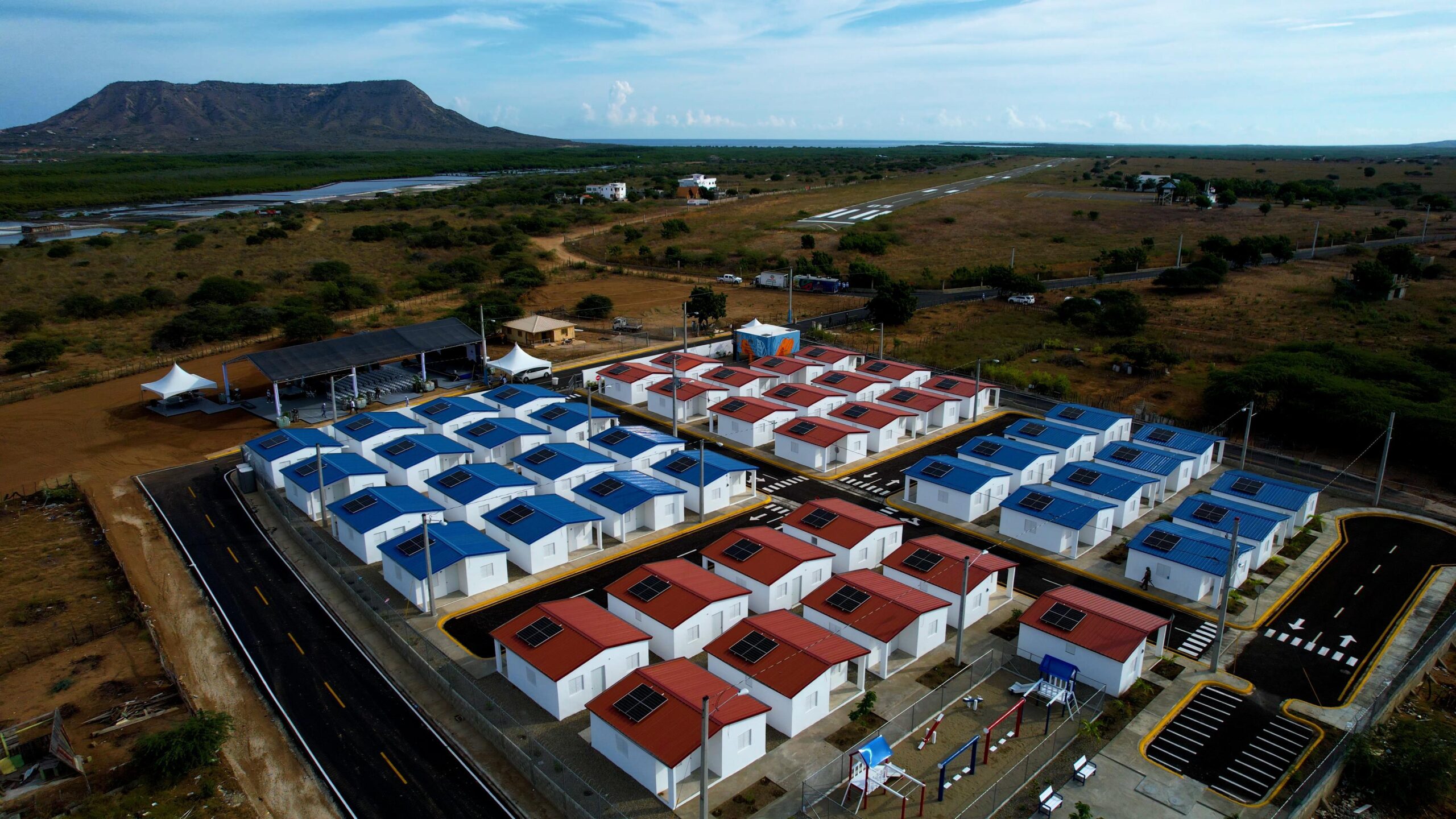 El complejo comunitario está ubicado en el sector La Aviación, provincia Montecristi, diseñado para mejorar la calidad de vida de las familias más necesitadas de esta provincia.