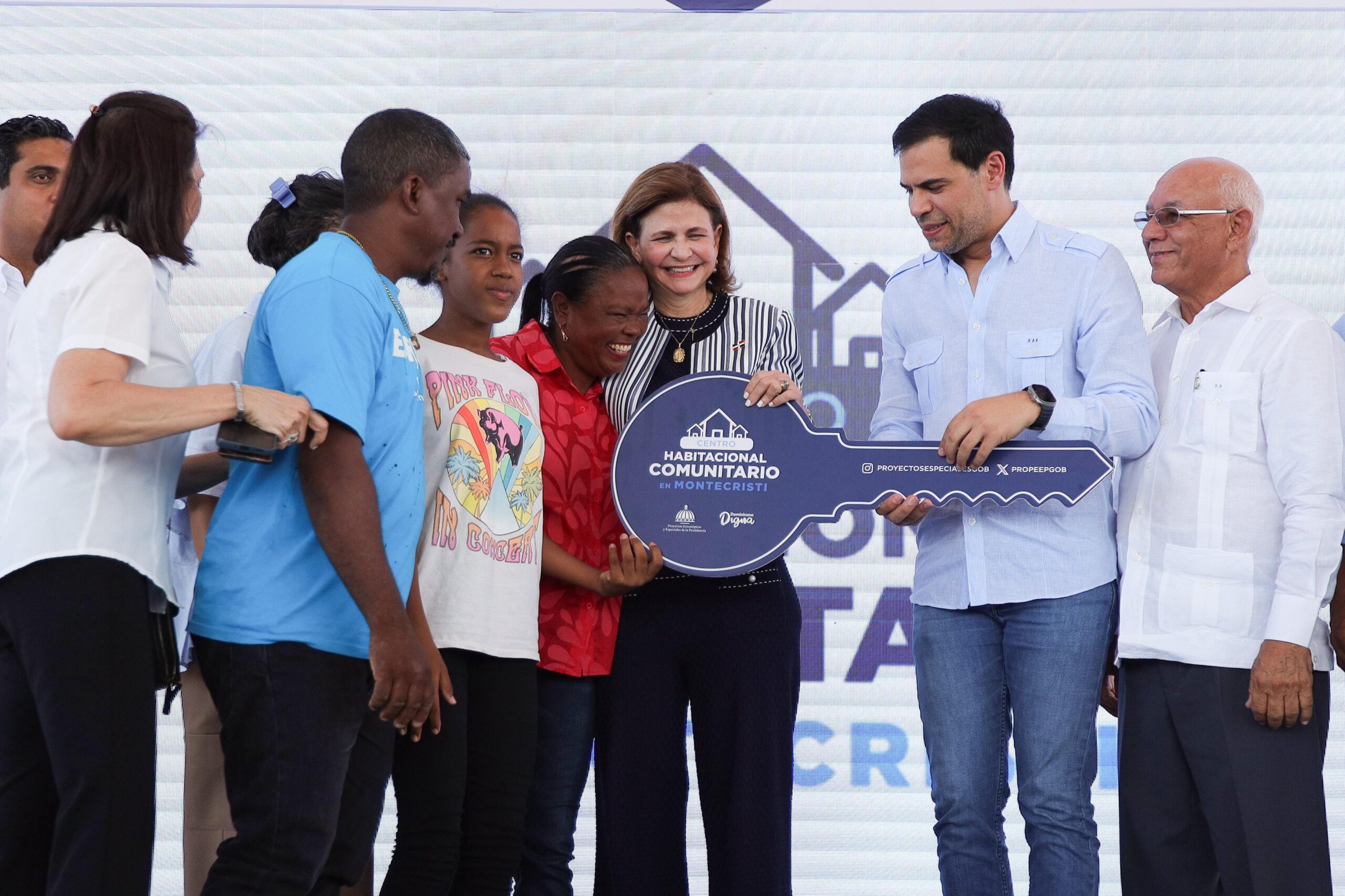 En materia de vivienda, la vicepresidenta entregó las llaves de sus nuevos hogares a 50 familias, como parte de la iniciativa de centros habitacionales que desarrollan los Proyectos Estratégicos y Especiales de la Presidencia (Propeep), liderados por Roberto Ángel Salcedo.