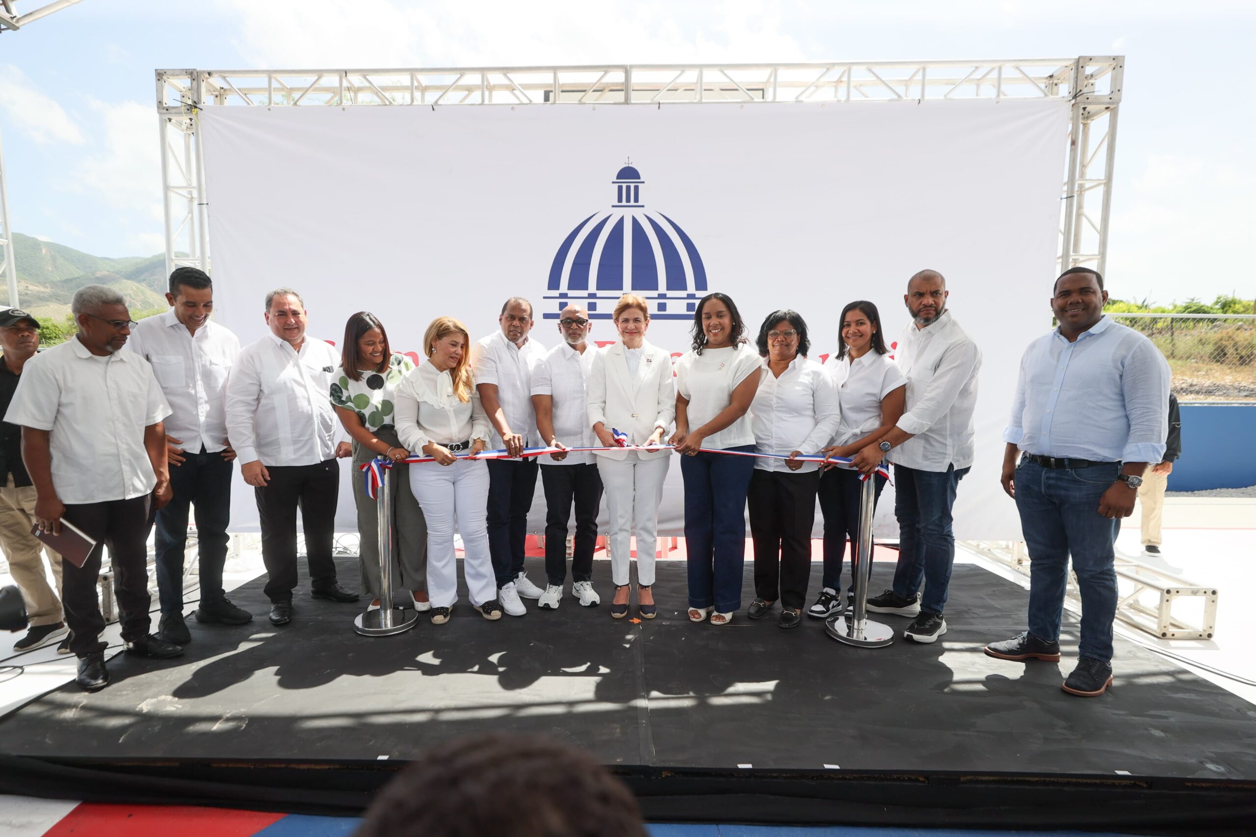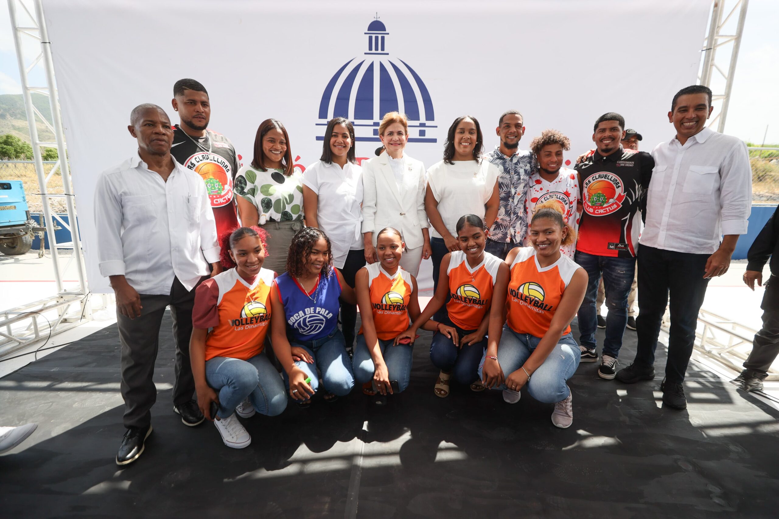 En Las Clavellinas, la vicepresidenta inauguró la primera cancha pública que se ha construido en el Distrito Municipal, la cual beneficiará a 420 niñas, niños y jóvenes que formaran parte de los equipos que practicaran baloncesto y voleibol durante el primer año.